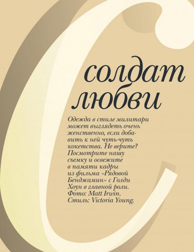 模特爱军装2010-06-23 by YESONTitle: Солдат любви Magazine: Vogue Russia July 2010 Model: Barbara Palvin Photographer: Matt Irwin Related Articles KINFOLK 杂志的设计感 In Magazine 杂志 《032c》一本以 Pantone 色号命名的时尚杂志 In Magazine 杂志 #VogueHope 看全球26位总编辑发挥创意 诠释“希望”的意象 In Magazine 杂志