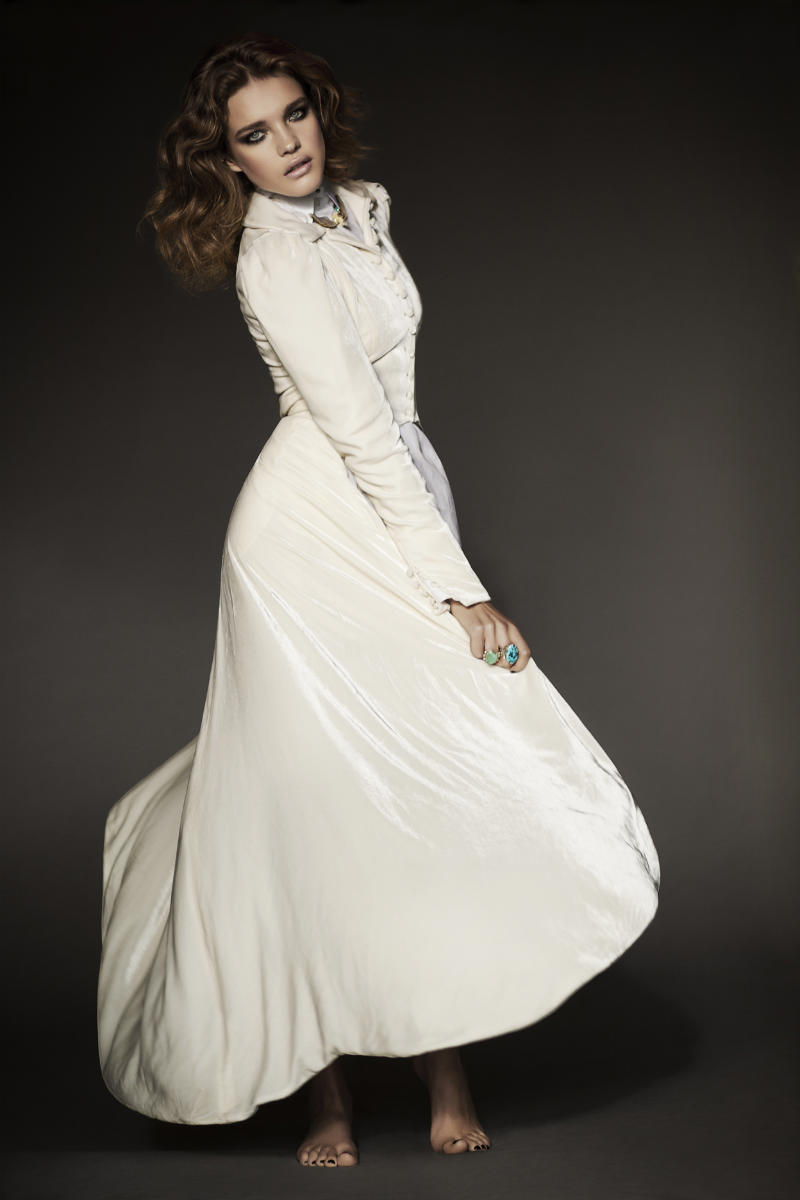 Natalia Vodianova 出现在封面拍摄四月芭莎俄罗斯收集旧袍的启发,从西Ralph Lauren的春天。