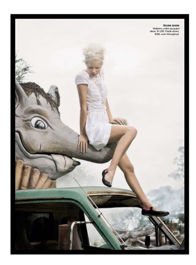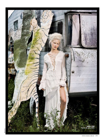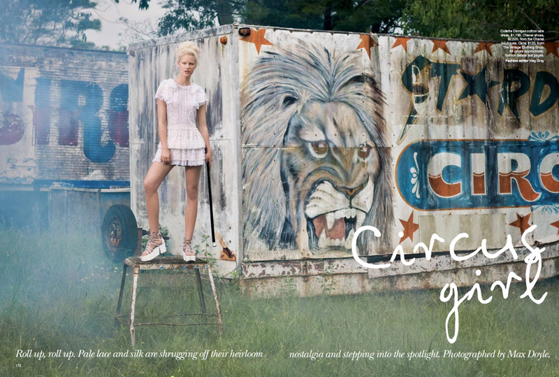 Circus girl 马戏团女孩2011-04-11 by YESONTitle: Circus girl Magazine: Vogue Australia May 2011 Model: Hannah Holman Photographer: Max Doyle (Names) Stylist: Meg GrayRelated Articles KINFOLK 杂志的设计感 In Magazine 杂志 《032c》一本以 Pantone 色号命名的时尚杂志 In Magazine 杂志 #VogueHope 看全球26位总编辑发挥创意 诠释“希望”的意象 In Magazine 杂志