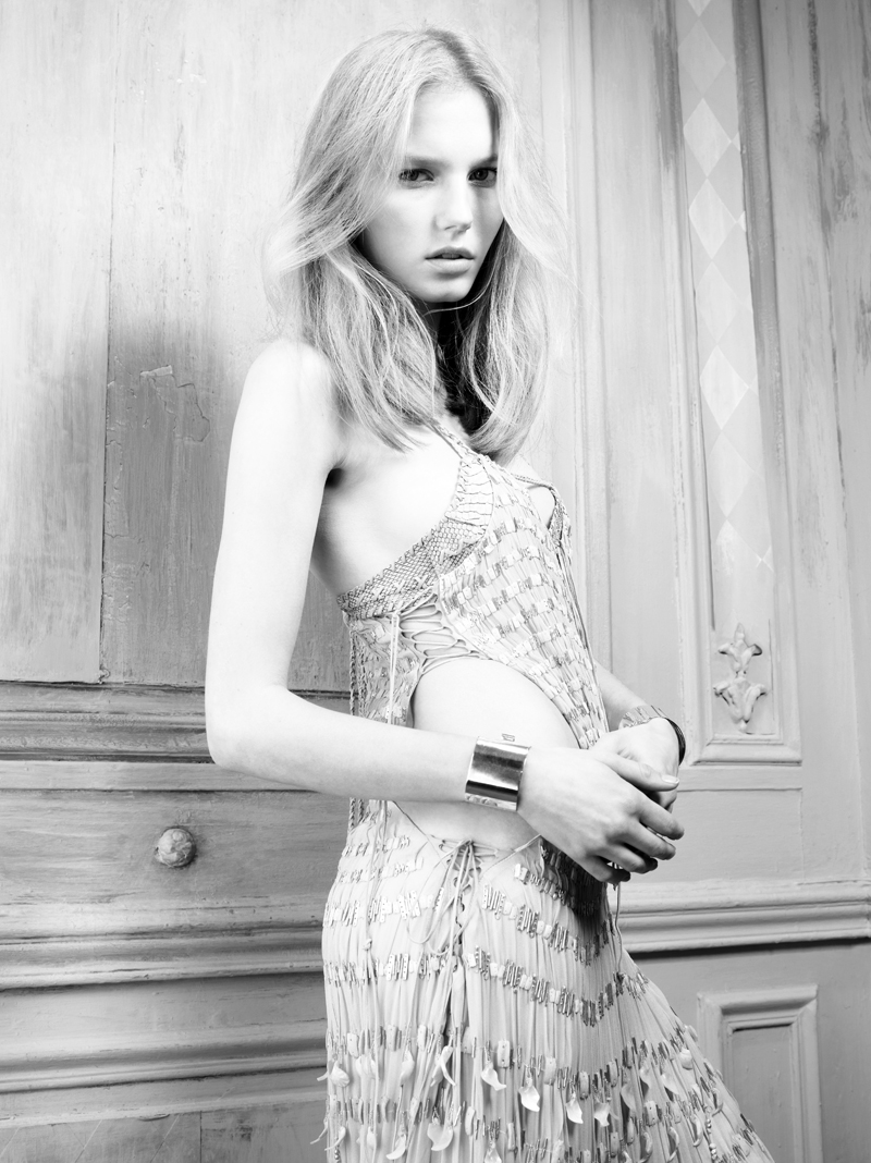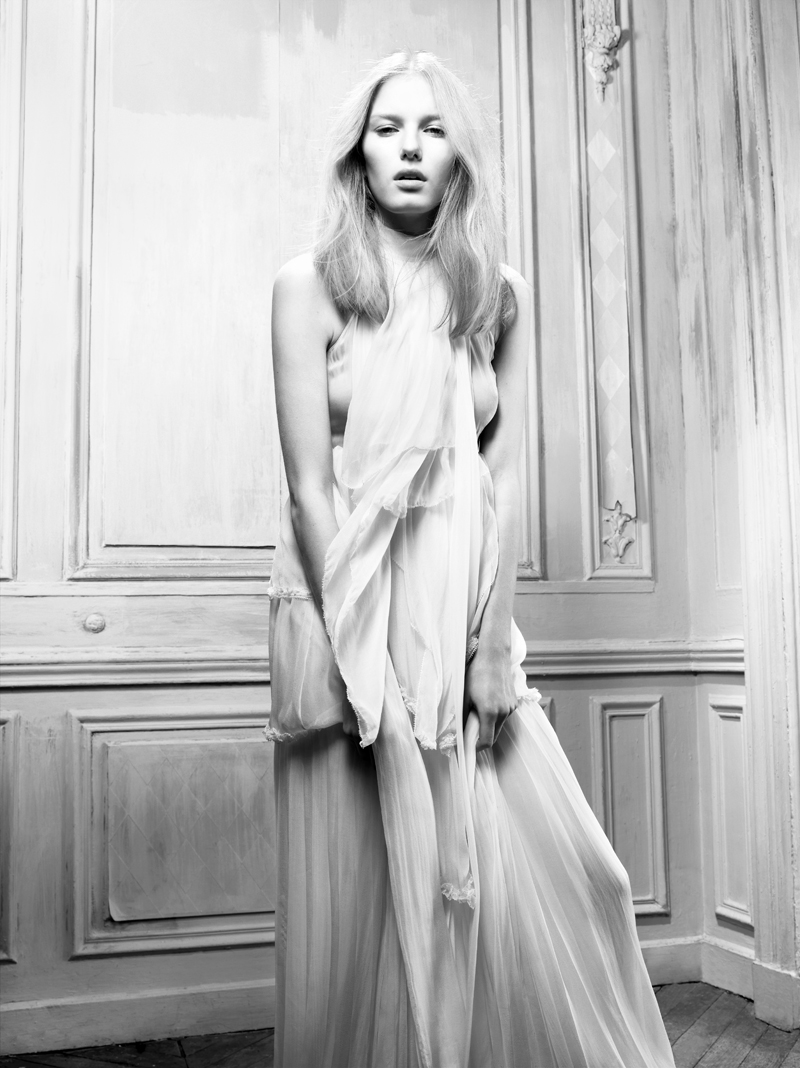 Stylist Claudia Carretti dresses model Marique Schimmel in “New Romantic” featured in Amica April 2011 lensed by Dirk Seiden Schwan. -Taylor