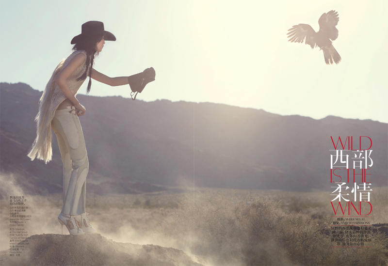 Liu Wen wears Ralph Lauren, Balmain, Miu Miu, Givenchy, and more in “Wild is the Wind” for Vogue China May 2011 by Mark Segal. -Taylor