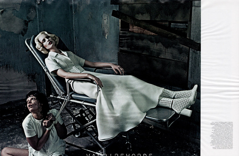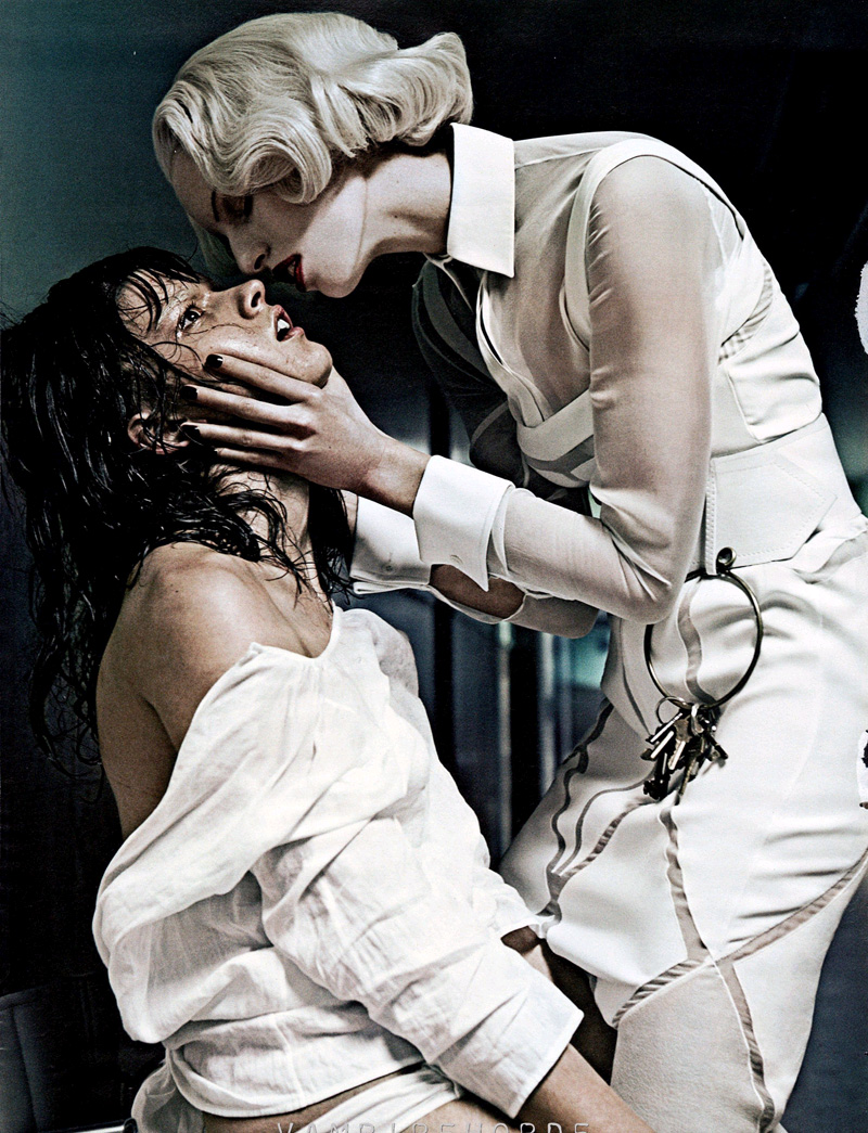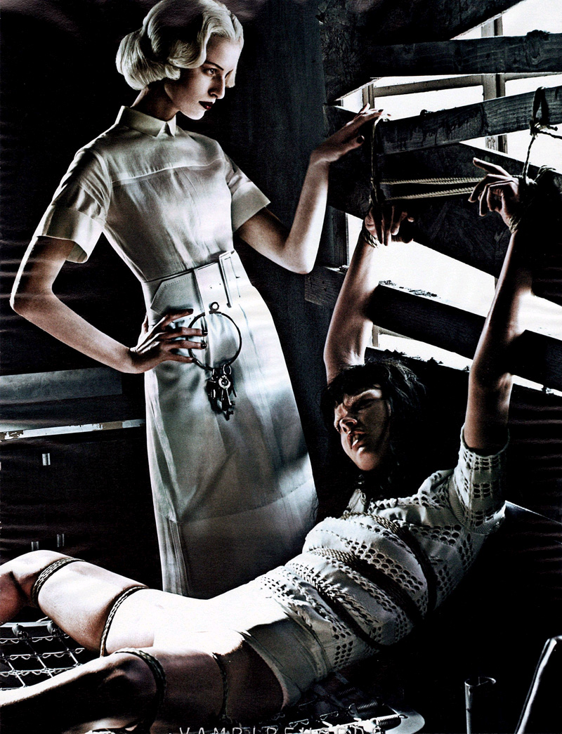 Strict Institution 这组照片来自 Interview 三月份的主题摄影,摄影师同样是Steven Klein,同样的三月 W 杂志(Good Kate, Bad Kate)也有一组相似的大片,摄影师 Steven Klein 最近的口味是不是太重了。