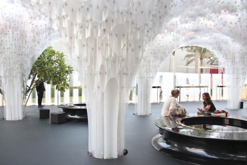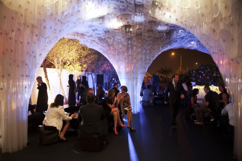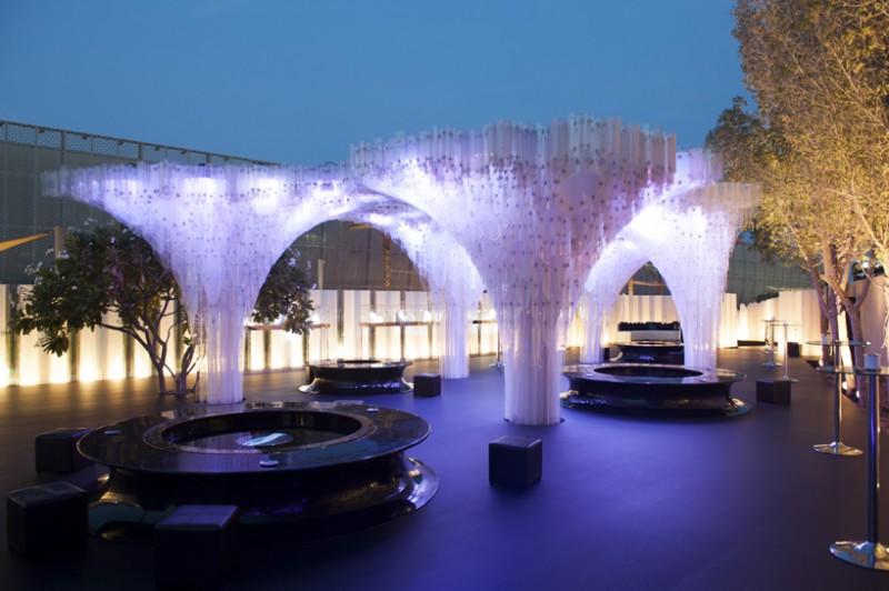 受著名奢华珠宝品牌委托,not a number architects建筑事务所为2012年阿布扎比艺术博览会(abu dhabi art)特别设计了一个临时装置“bulgari pavilion”(宝格丽馆)——这是一个专属的私人活动场所,里面设有现场音乐,酒吧和品牌高级珠宝展示。