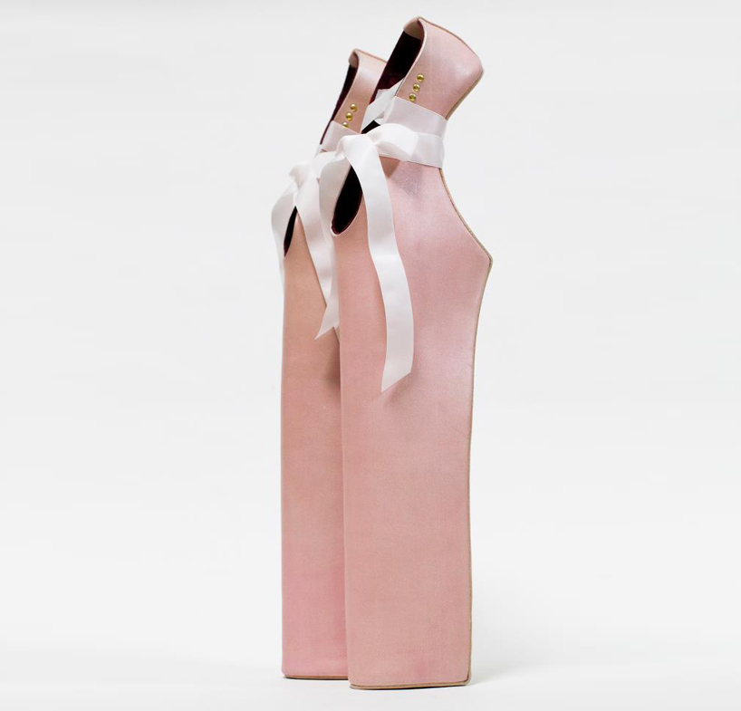为lady gaga专门定制,并出现在她“marry the night”歌曲录影带中的这双鞋子是一款非常“gaga”的夸张高跟鞋,由日本设计师noritaka tatehana为她量身打造——这双鞋还作为“shoe obsession”展览的一部分在纽约时装学院fashion institute of technology博物馆展出,展览将持续到2013年4月13日。这双18英寸高的“lagy pointes”是设计师tatehana为gaga设计的第二高的高跟鞋,它融合了芭蕾舞、艺术和高级定制三种元素。