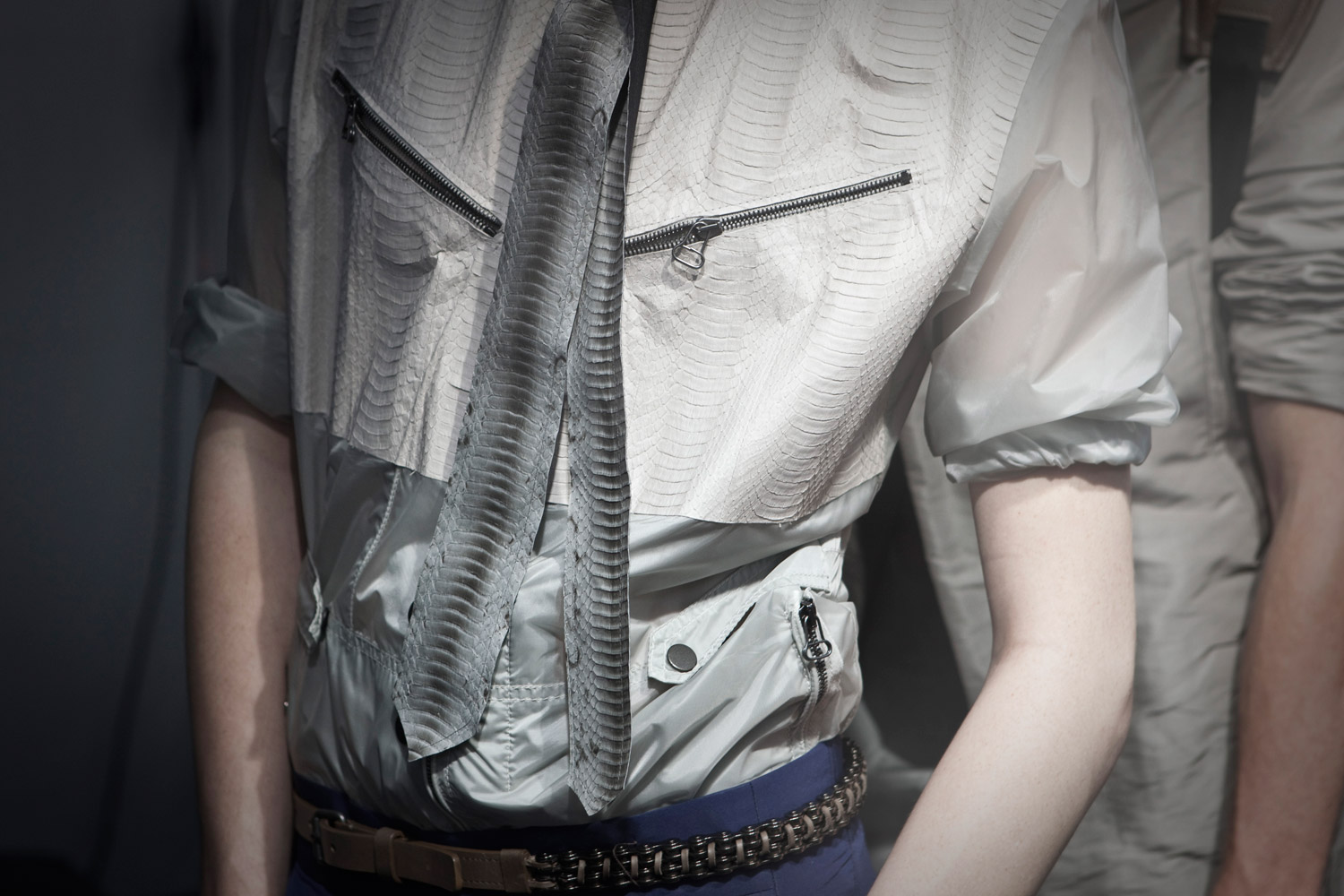 LANVIN S/S 2013 // 混合材料服装2013-03-222013-11-16 by YESONLANVIN 2013春夏系列,让人感受到,在结构化与高科技和未来技术,布料不单一,几乎透明的质地。双面绣是穿大衣像丝绸衬衫,搭配一条领带。珍贵的版本都覆盖着触动的蛇皮,切薄如纸,装饰着内部连线给添加纹理。Related Articles Porsche x Pantone:一种未来感的灰色 In Fashion 时尚 Hikaru Utada x Issey Miyake 定制彩虹渐变服装 In Fashion 时尚 巴黎奥运会上的时尚感 In Fashion 时尚