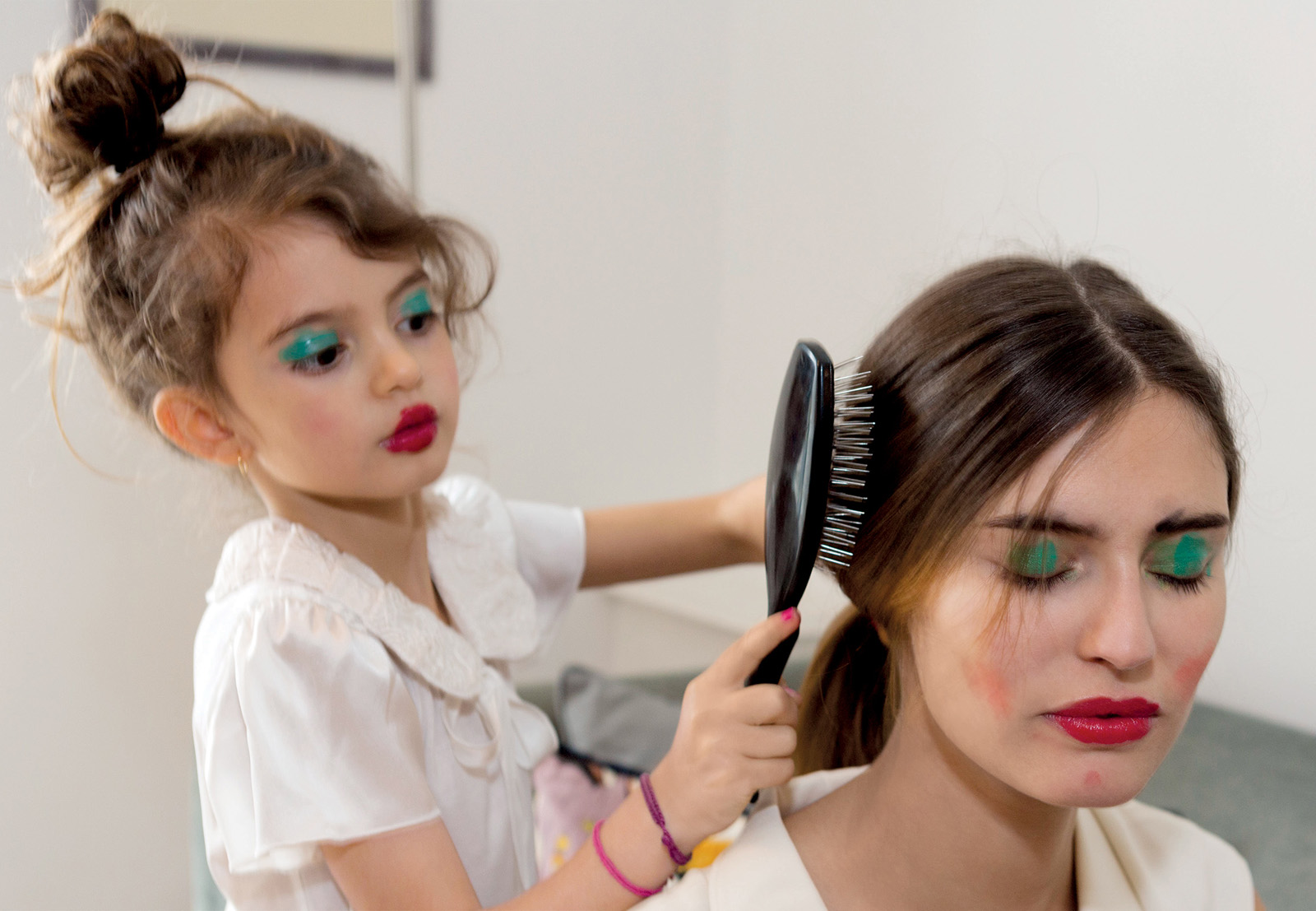 Grey 杂志2013春夏刊的专题是Daily Chores,大意是日常琐事。在摄影师Martin Parr镜头下,模特儿Bianca Balti 和她的女儿Matilde Lucidi在日常做的一些看起来很日常的事情,相片看起来确实非常的有趣。一样的亲女装,妈妈做着日常事情,女儿总是跟在身后。很有趣。