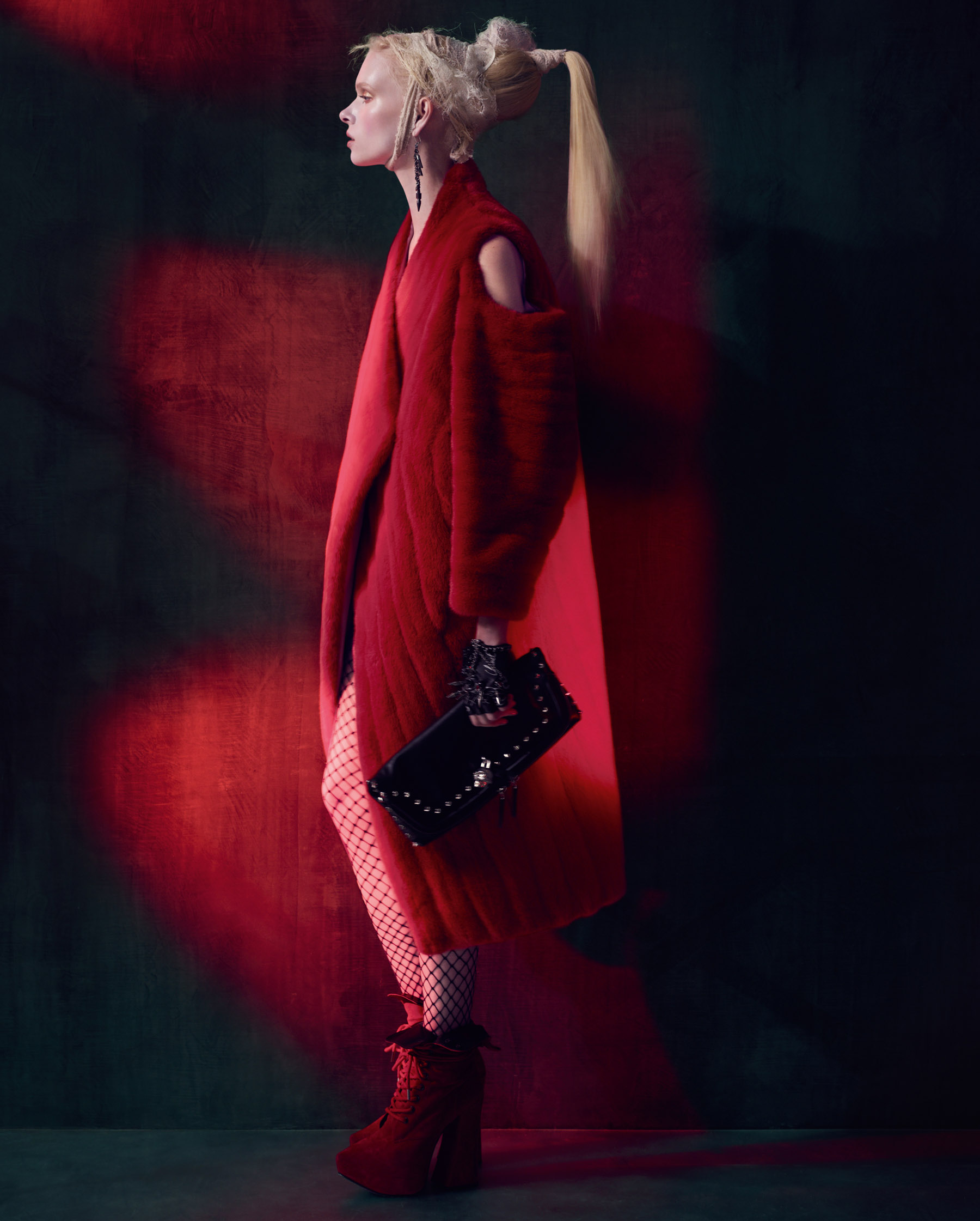 原本反叛的朋克女孩,穿上华丽深红色晚装后,在Damian Foxe的镜头下,展现出另一种独特女人迷人的魅力。