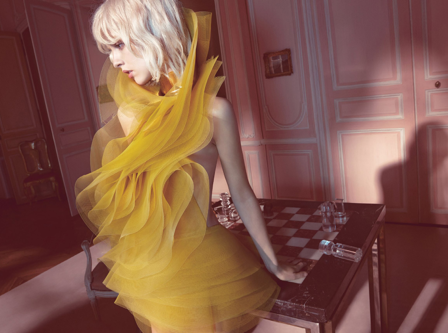 图1: 黄绿色层叠纱质连身裙 Alexandre Vauthier