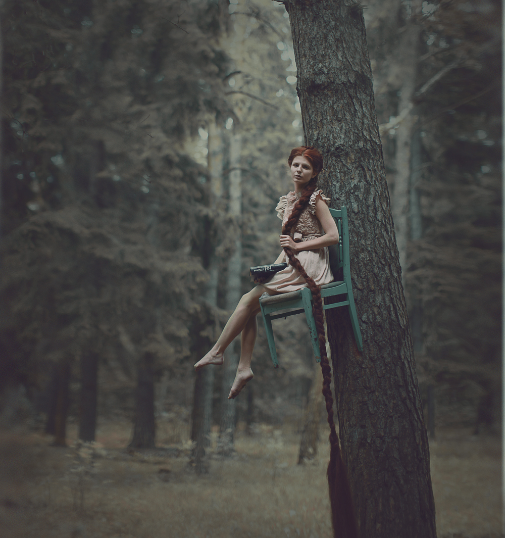 来自莫斯科的 Katerina Plotnikova 是一位非常擅于借迷雾、光线、服饰来进行户外人像拍摄的80后摄影师,她的作品奇幻迷蒙,画面中的少女长裙飘飘,如像深居森林中与世无争的精灵,再配上幽暗神秘的森林作为背景,让每张照片都充满童话色彩。虽然这类她比较驾轻就熟的摄影手法已经甚受追捧,但这位新锐摄影师显然并不满足,因此她决定在最新完成的这辑森林摄影作品中,加入新的元素——野生动物。