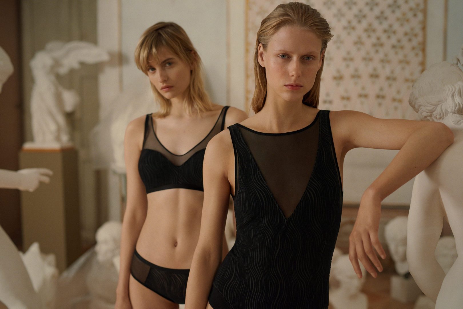 秋冬新品内衣系列呈现出长线条的新样式,采用利落交叉线条的剪裁让造型更加出众。这种风格也融入了睡裙和贴身上衣之中,尤其是含软杯文胸或三角文胸的文胸上衣系列,以及采用深低领或绕颈吊带的时尚连体衣,让日常穿着选择搭配更加容易。