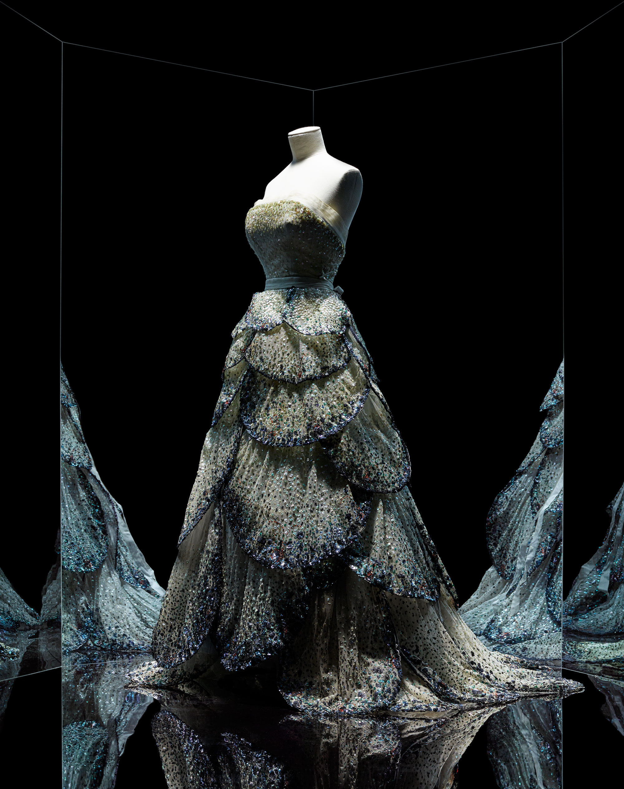 Christian Dior是一位艺术和博物馆爱好者。在70多年的创作历程中,品牌不断从画作、家具和艺术品中汲取设计灵感。这些作品突显并延续了Christian Dior的艺术视野,使他得以探索服装与各类艺术之间的关联,并由此塑造品牌的独特风格。Florence Müller和Olivier Gabet两位展览策划人以时间和主题顺序构思展览,并首次将博物馆的时尚展区以及主厅合为一体,成为占地近3000平方米的大型展区。