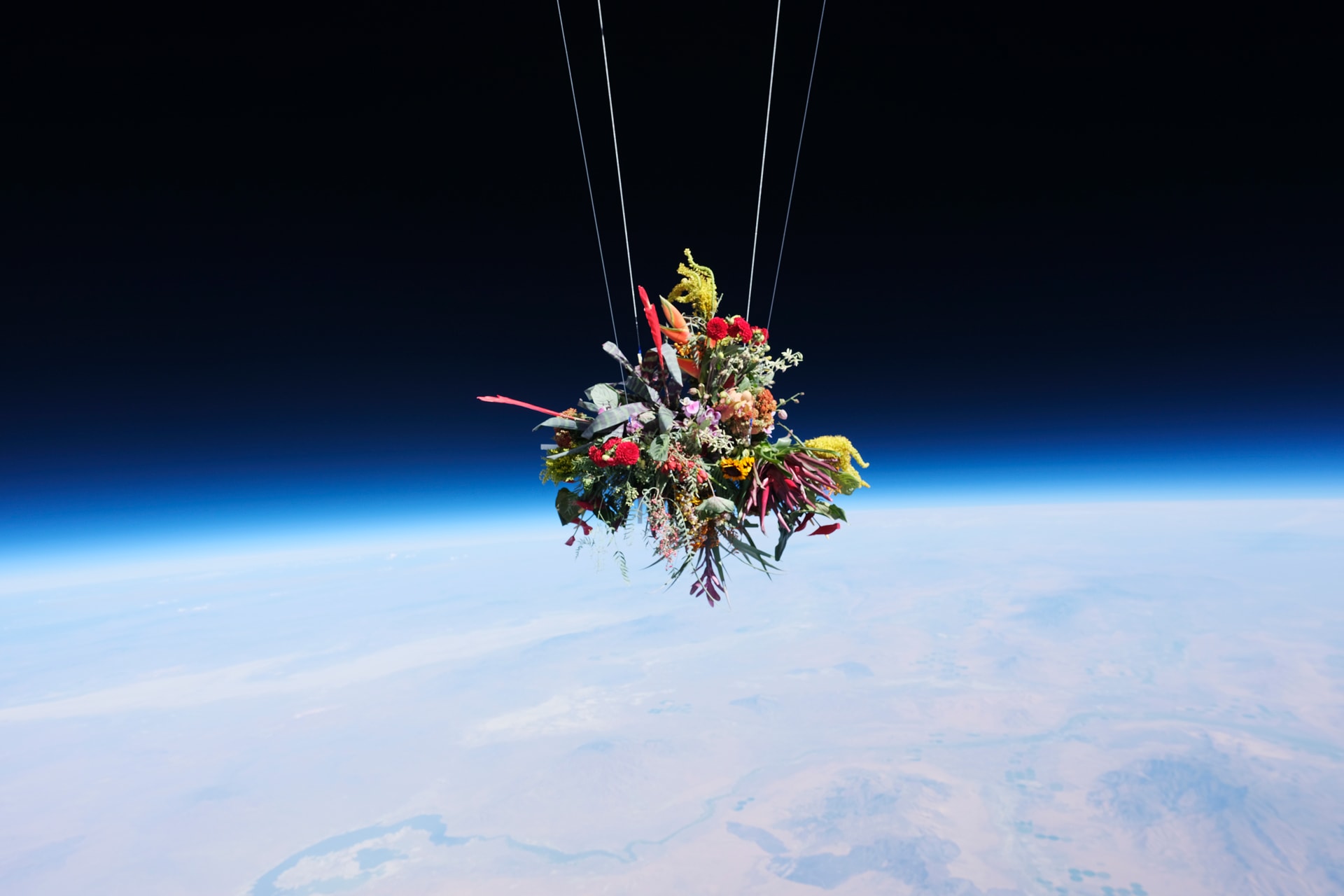 日本知名花艺师 Azuma Makoto 完成了”In Bloom”系列试验第四期,该项目的主要目的之一就是要把植物放到意想不到的自然环境中。在这一期里,他把一束精心布置的插花送入了平流层,另外,还重新验证了第一期”Exobiotanica”得出的一些结论,在第一期里,他的团队成功地把一盆50年的盆栽送入了太空。跟第一期的盆栽一样,这束花从地面升到空中、再从空中返回地面的过程也被全程记录了下来。