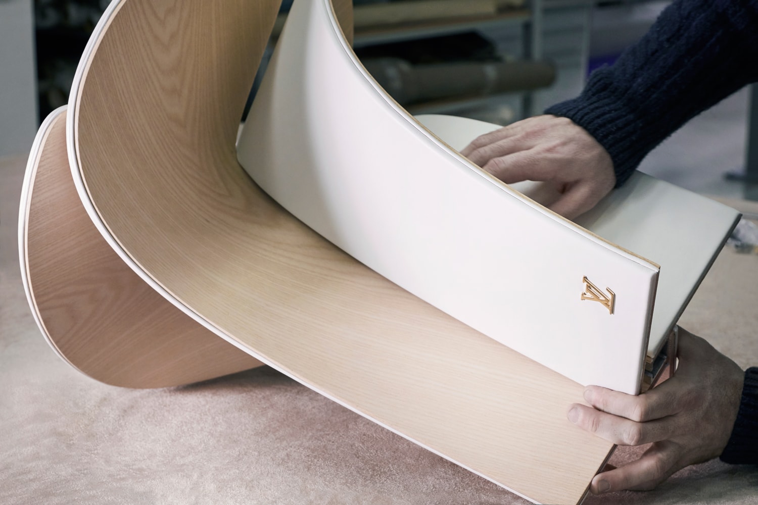 为路易威登设计这款“花瓣凳子”时,吉冈德仁采用了品牌极具代表性的四瓣花标志的形态,并将其转化为一款具有象征意义的产品,代表着花朵从蓓蕾到盛开的过程。这款坐具完美展示了路易威登品牌在木材与皮革加工方面的精湛工艺,尤其突出了他们在品牌发展过程中不断摸索出的技巧。通过简洁而又巧妙的设计,这款艺术品传达出能够超越时间的形象信息,不仅突出了历史感,更描绘出路易威登品牌的未来。