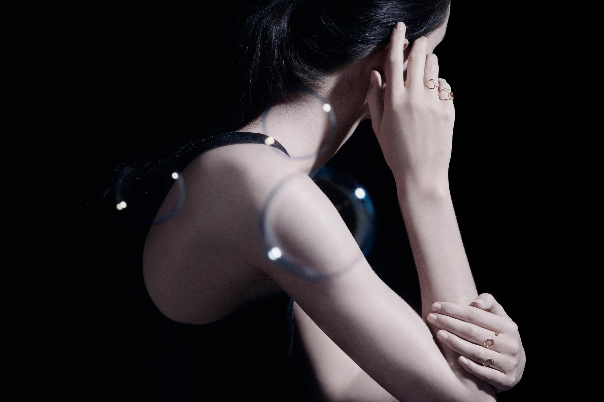 Sarah & Sebastian 最特别之处,便是每次推出一个新的珠宝系列时,他们都有一个十分强烈而明显的系列主轴,以充满故事性与想像力的手法在设计细节上融入理念。而这次黑色背景画面的饰品大片,更是以 Oil 为主题创作的系列饰品。