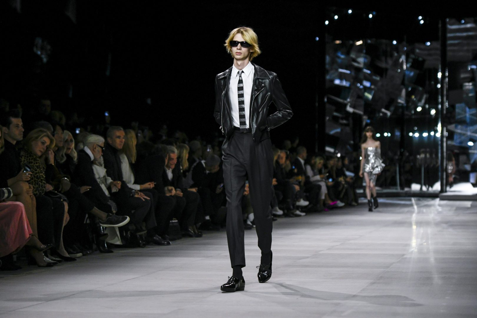 巴黎时间9月28日晚,CELINE 2019春夏系列在路易十四时期建造的巴黎荣军院发布。这是新创意总监 Hedi Slimane 在 CELINE 的首秀,他还带来了该品牌的首个男装系列。说这是本季巴黎时装周最受关注的一场秀绝不为过。今年二月 Hedi 接替了任职9年的 Phoebe Philo,并在九月以更换logo和关闭电商等手段对CELINE 大行改革。被曝光的新品虽已在网络上激起不小的浪花,但这场秀终归是人们判断 CELINE 变革深度的标尺。如今看来,CELINE 的确在 Hedi 手中头也不回地步入了新阶段。