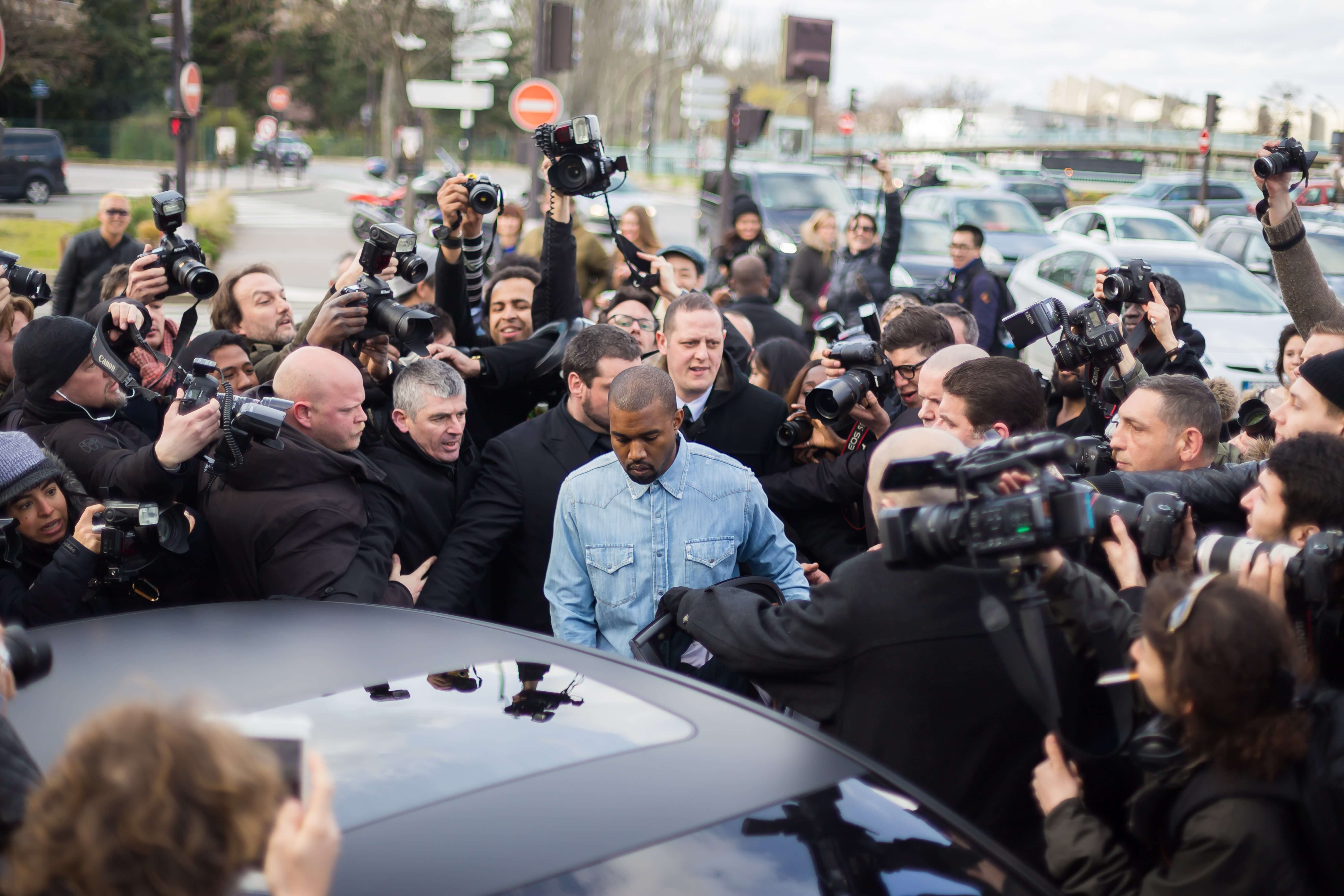 Kanye West,2015 年 3 月 2 号,巴黎 AW15,Celine 秀场外。