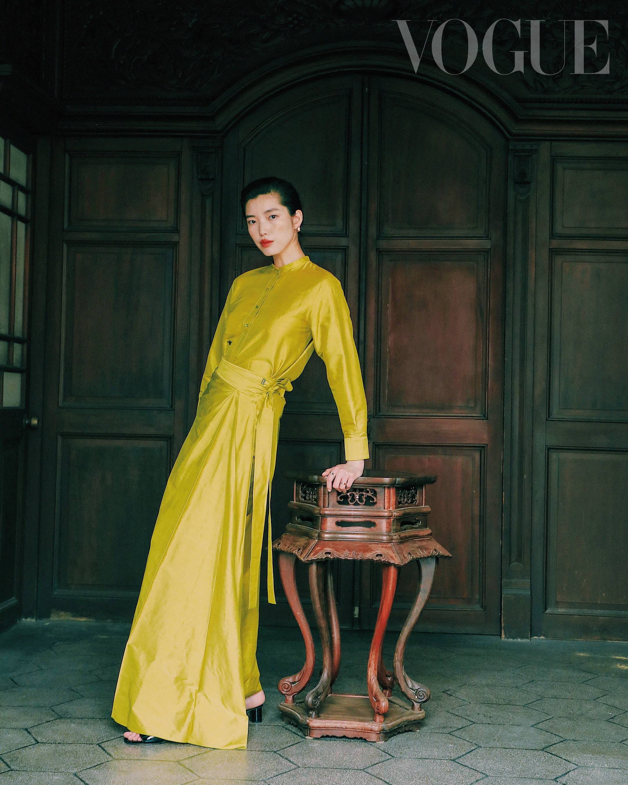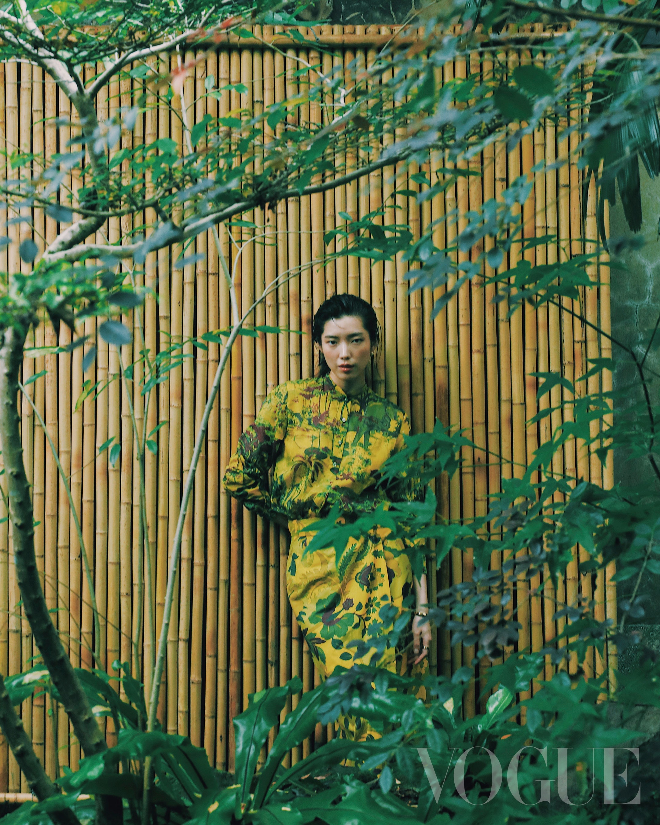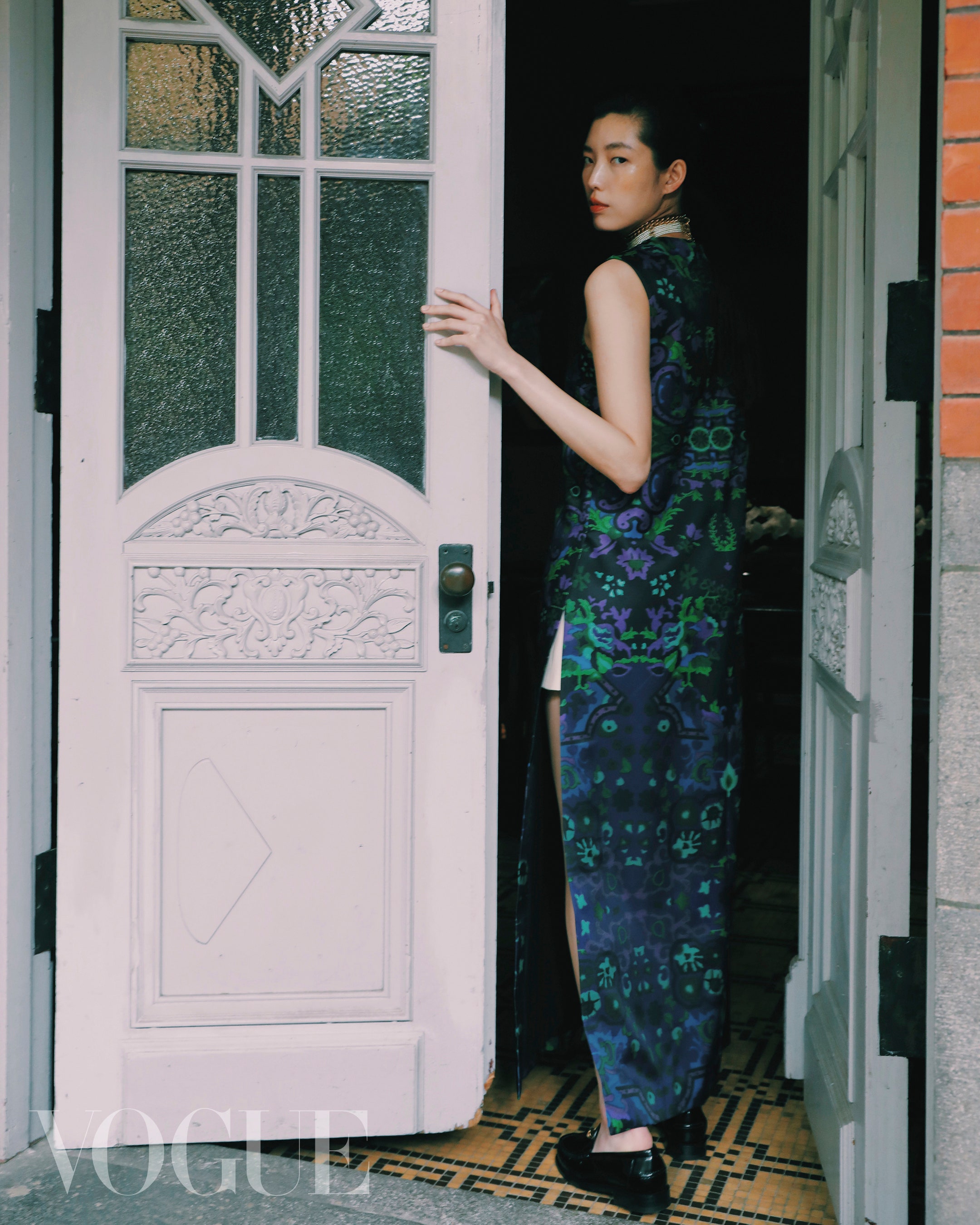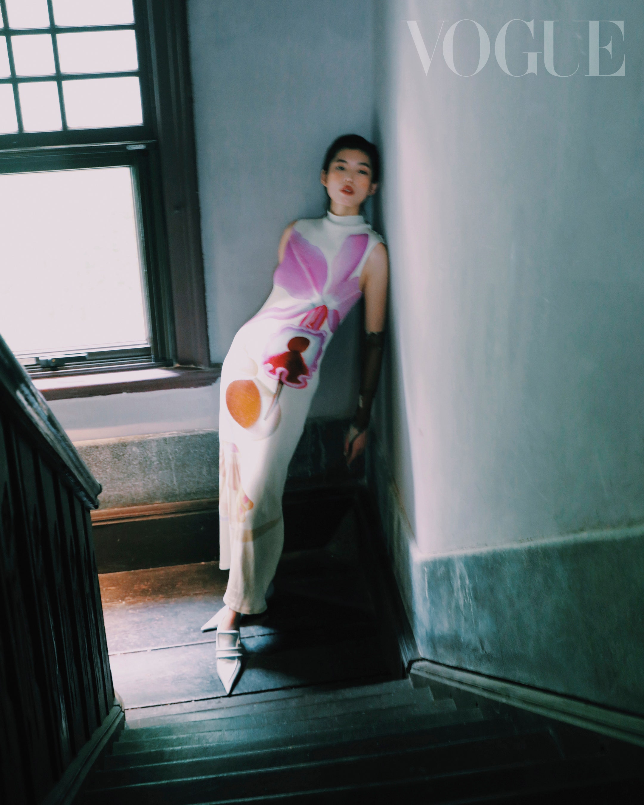 VOGUE 6月号封面《老城漫游》, 走进老台北的西区,倚靠在带着年代感的斑驳红砖墙,在一栋百年建筑的老洋房里感受时光缓慢流逝。穿着缀饰异国情调的刺绣花朵洋装,沏一壶热茶在顶楼露台,浅酌慢品。阳光洒落,吃着桂花条糕,老派的台北情调,在初夏蔓延发酵。