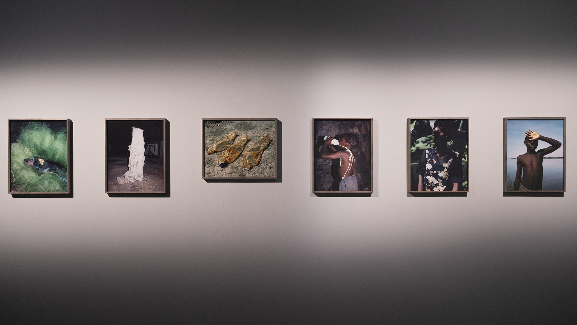 展览以艺术家2004年至2014年在肯尼亚和南非创作的内省和私密作品开场。薇薇安·萨森在两岁到五岁之间住在肯尼亚的一个村庄,她的父亲是当地医院的医生。她将这段时期描述“魔幻思维年代”,她的脑海中充满了带着早年强烈的情感和清晰图像的回忆:光、影、色、人、星空构成了她摄影作品中的记忆点。十年后,十几岁的她与父母一起回到肯尼亚,并于2001年再次回到那里拍摄。回到她度过早期童年时光的村庄,她的记忆与想象交织在一起。从这种组合中萌生了“凤凰木”,“睡眠异常症”和“暗影”系列作品,可被理解为一次内省之旅。萨森将她在肯尼亚生活的回忆与这片土地的现实相结合,创造了高度个人化的影像作品。她使用熟悉的风格化工具——阴影、构图、色彩,将身体作为雕塑对象——并将这些不同部分组合起来。从这些组合中,萨森创造了荒谬、出乎意料的身体与视觉语言的多维度表达。