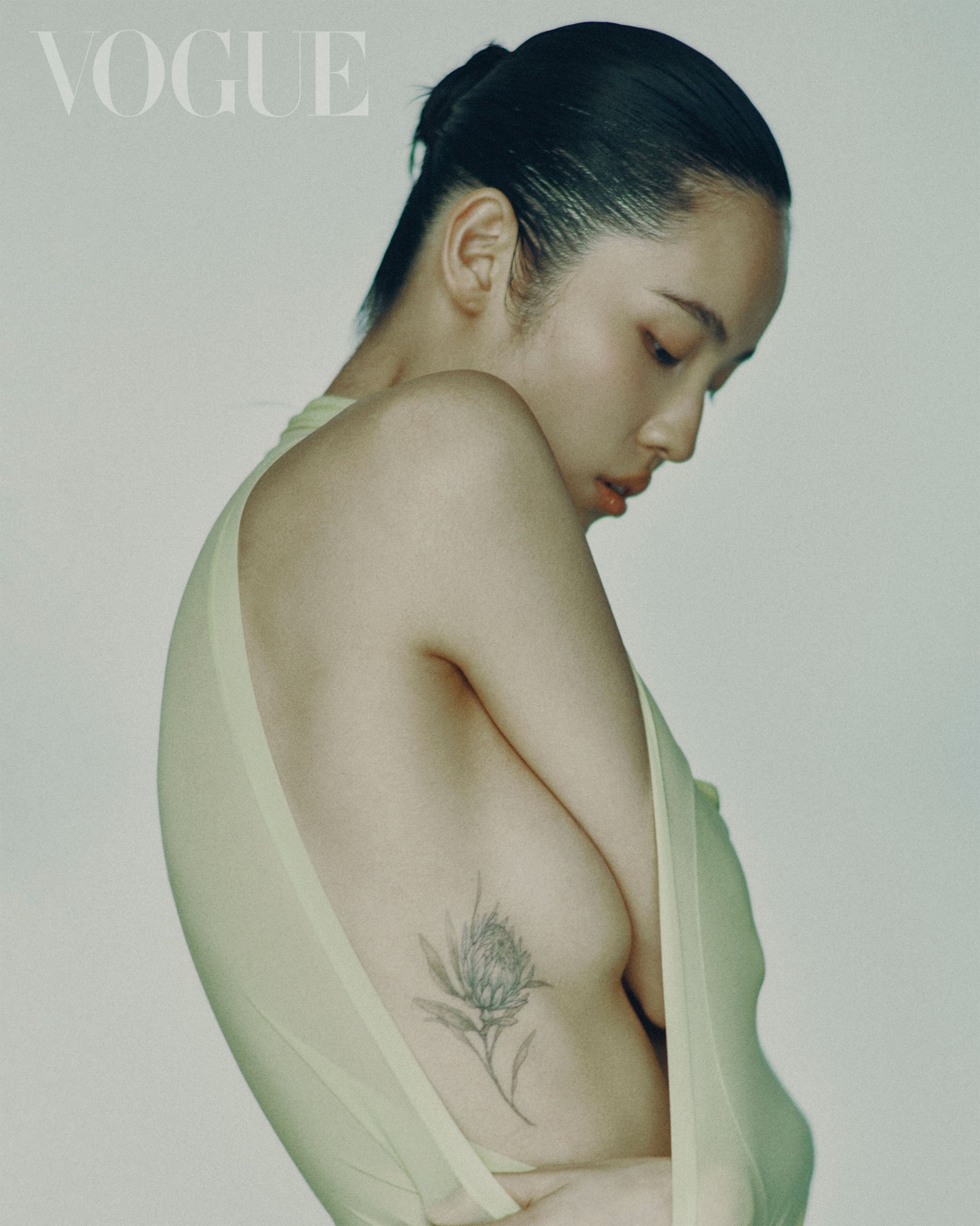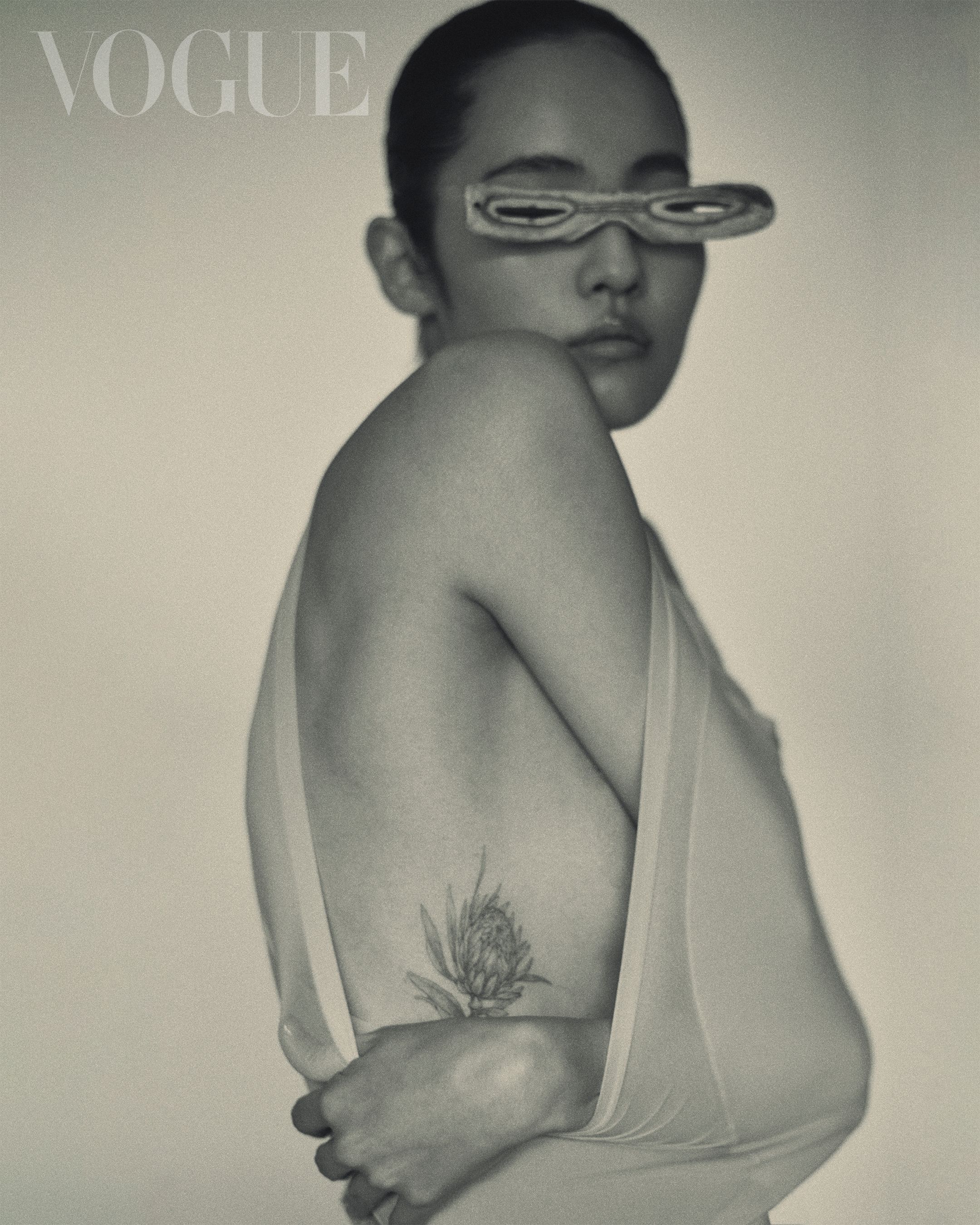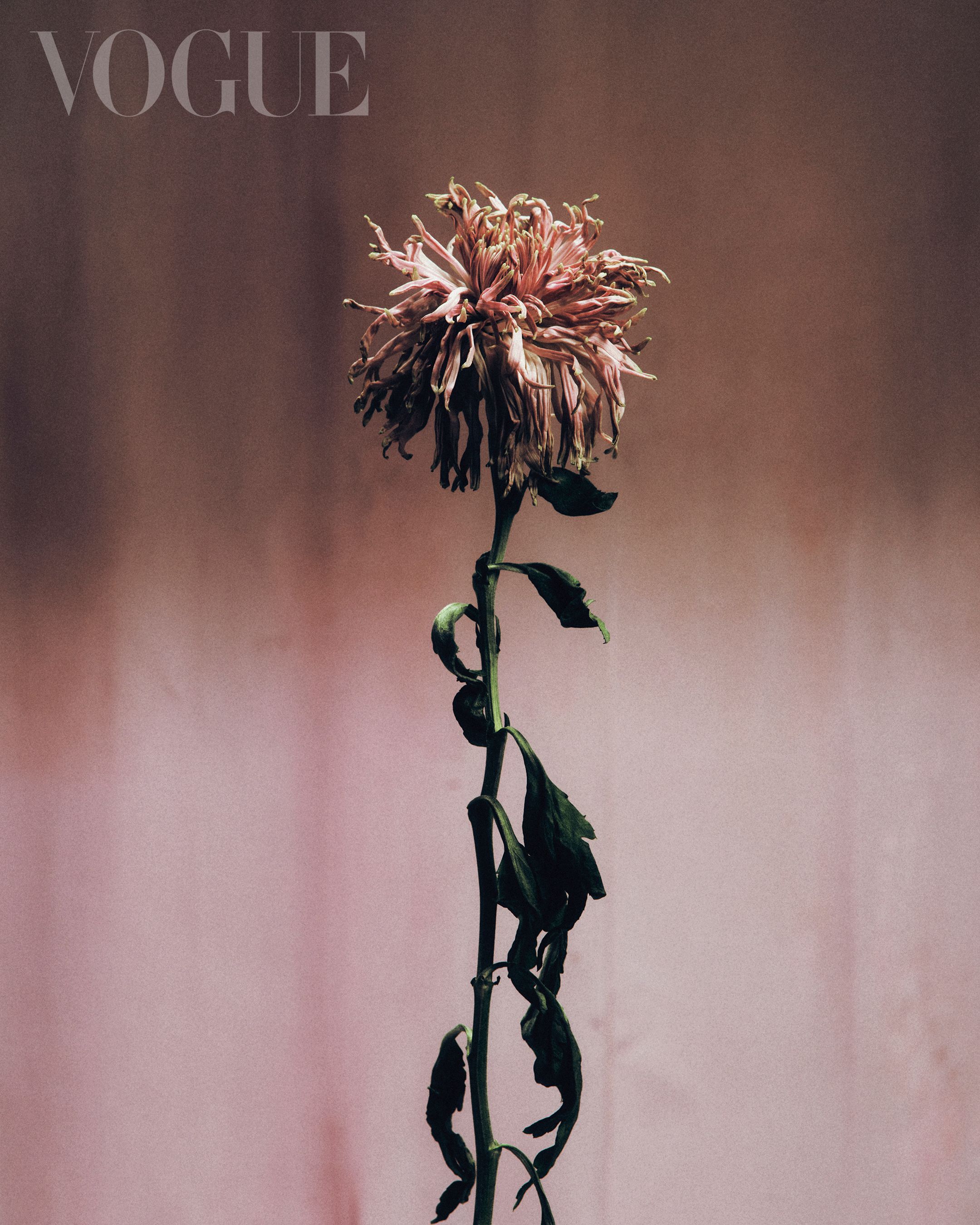 Vogue Taiwan 三十周年。封面模特:Song Ah。本期的封面画面灵感来自一幅昭和时期的菊花画作。画中的菊花淡彩、低饱和,带着些许阴影与雾感,它静静伫立一角,不急于被看见,却在不知不觉中安定人心。