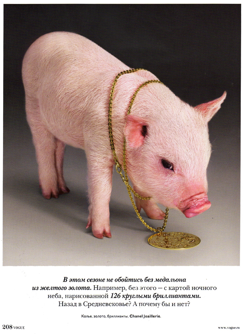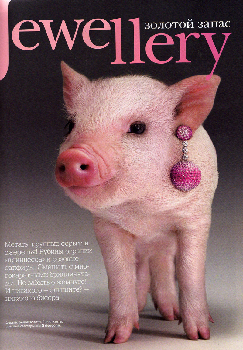 俄罗斯 VOGUE 珠宝版,很有争议的一组片子, 是猪才戴这一些珠宝呢?还是猪都可以戴,更何况你呢?