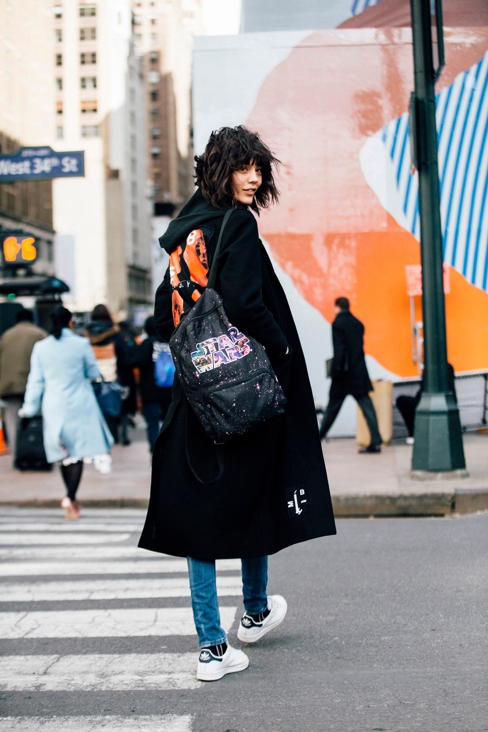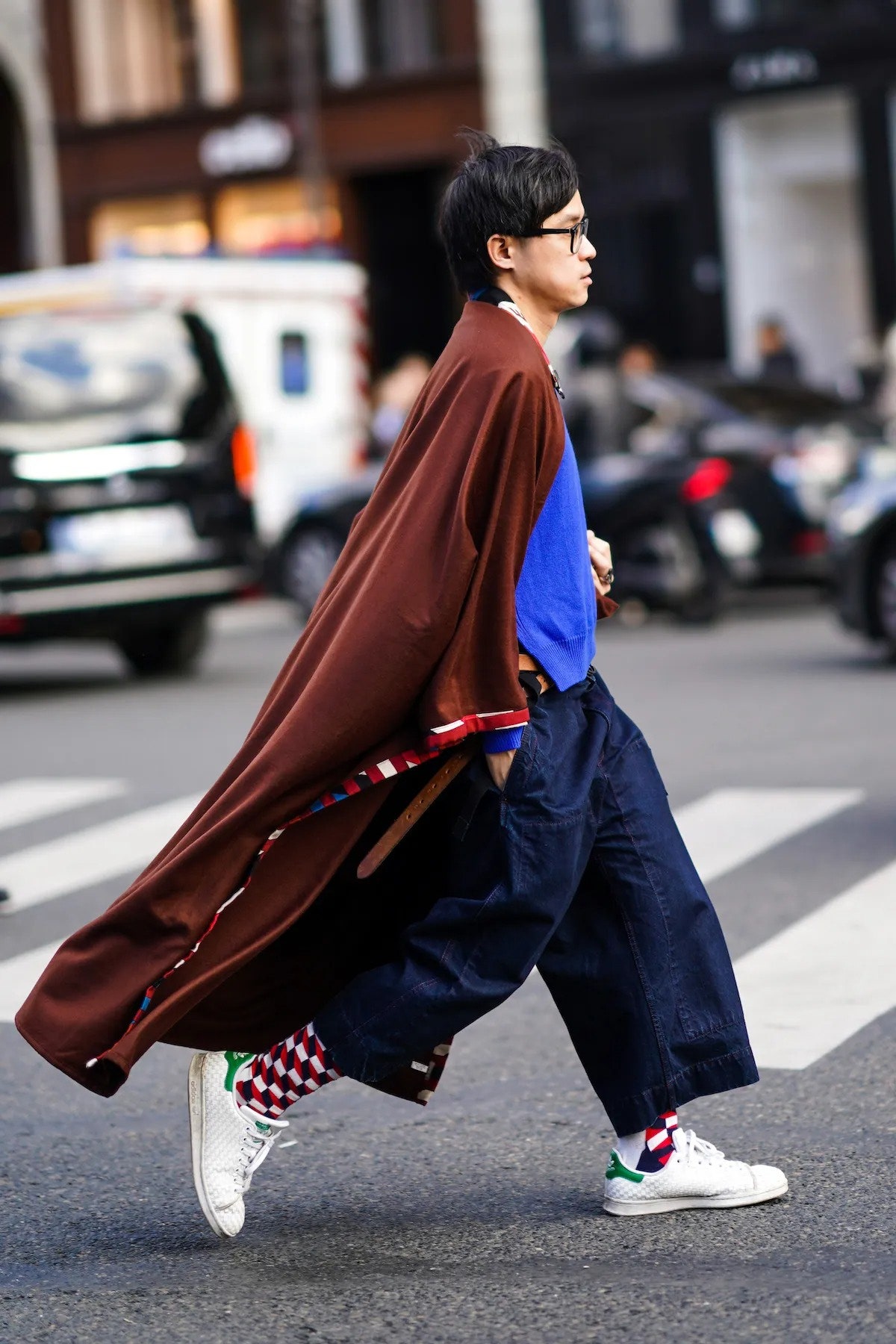 此外,宛如白纸般的Stan Smith,也非常适合搭配色彩缤纷的印花图案。配上从裤脚隐约可见的抢眼图案长袜,也能自然而然突显出整体穿搭的重点。