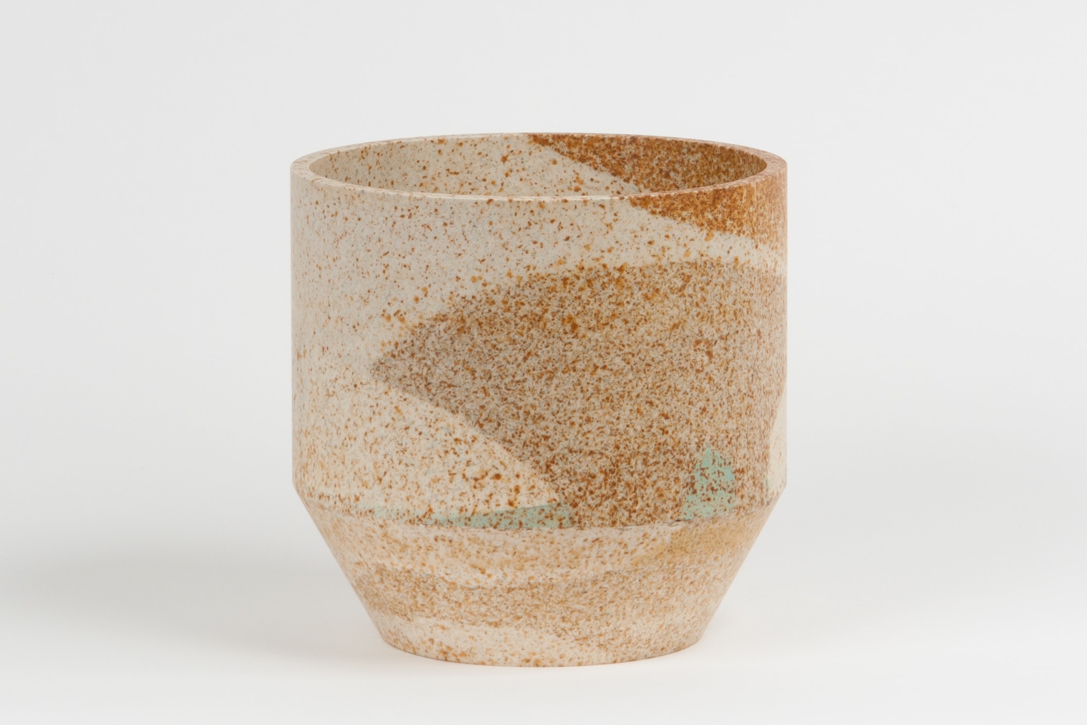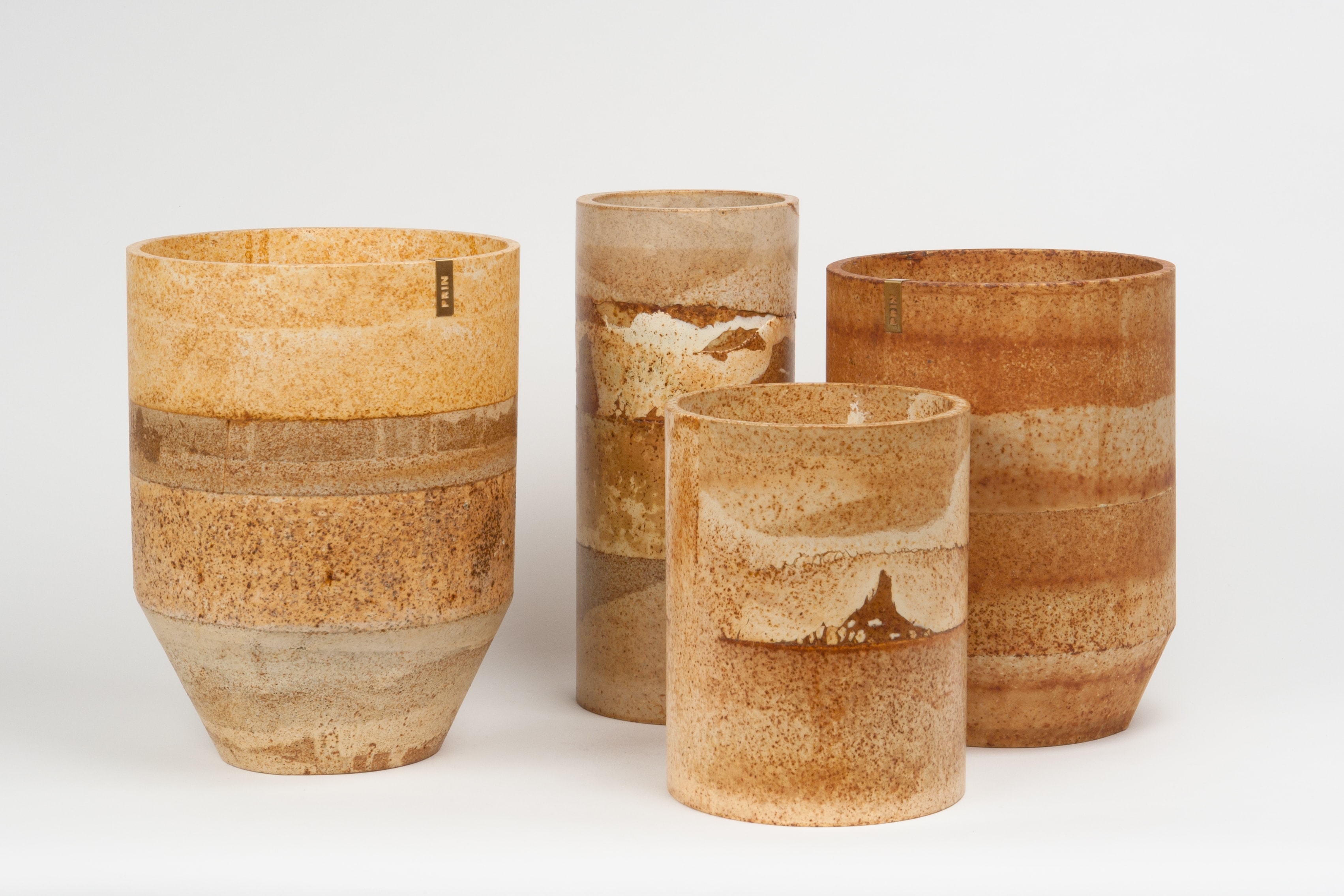 法国设计师 Ariane Prin 现居伦敦,她从实验探索和对废弃材料再利用的兴趣中汲取灵感,创作出极简风格器皿系列“Rust”。2013年,Ariane将切割钥匙的金属粉尘与石膏及亚克力混合后首次发现,其纹理粗糙的表面和丰富微妙的色调具备有机触感。这种轻巧的仿石复合材料在上世纪80年代原本用于建造业。如今,Ariane等当代创造者正在测试它的潜能。