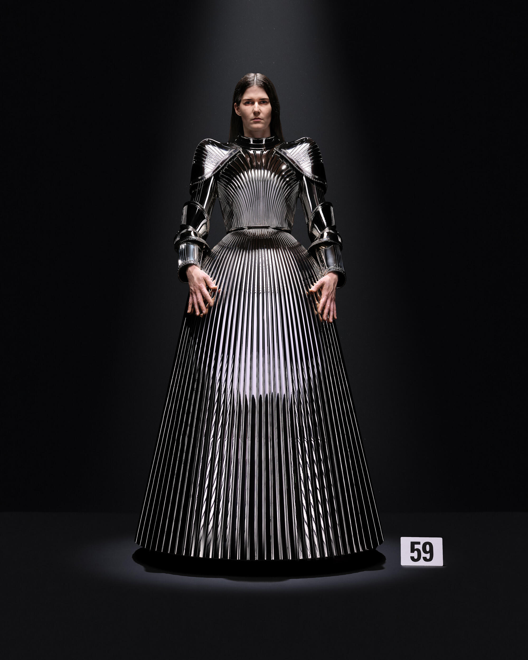 巴黎世家 Balenciaga 在设计总监 Demna 的带领下,在 2021 年重启高级订制服系列,今年推出的第 52 季高级订制系列是他执掌品牌后的第三个高级定制系列,他也以「制作衣服的艺术」为创作主轴,不再选择在令人眼花撩乱的场地搭建华丽布景,而是回归 Balenciaga 位于巴黎乔治五世大道 10 号的高订沙龙,重返高级定制服装的根源。除了重现摩洛哥王妃 Grace Kelly 的生日服装之外,本季多套造型均展现巴黎世家精湛的剪裁功力,压轴登场的 3D 列印盔甲裙更是让观众眼前一亮。