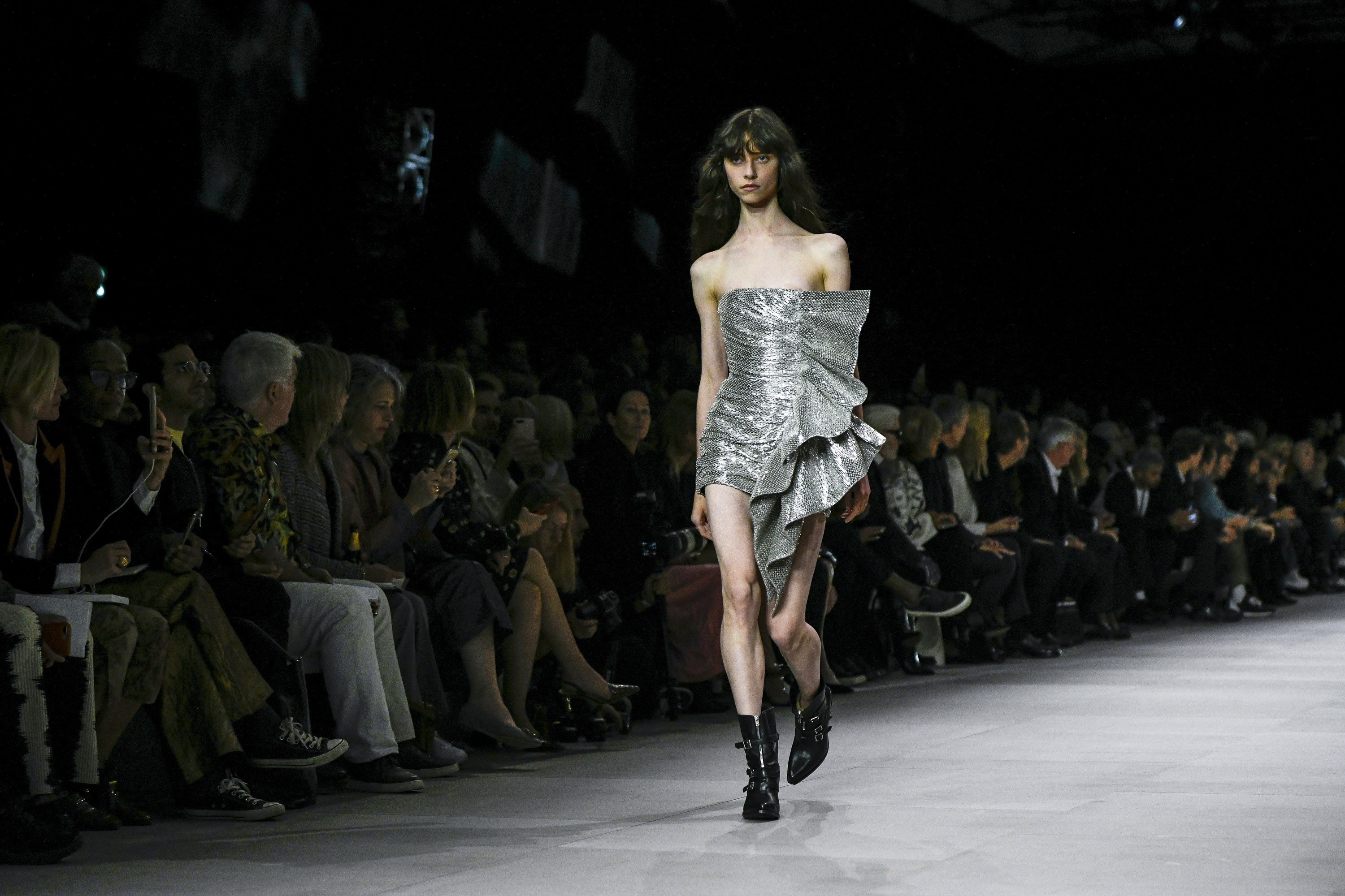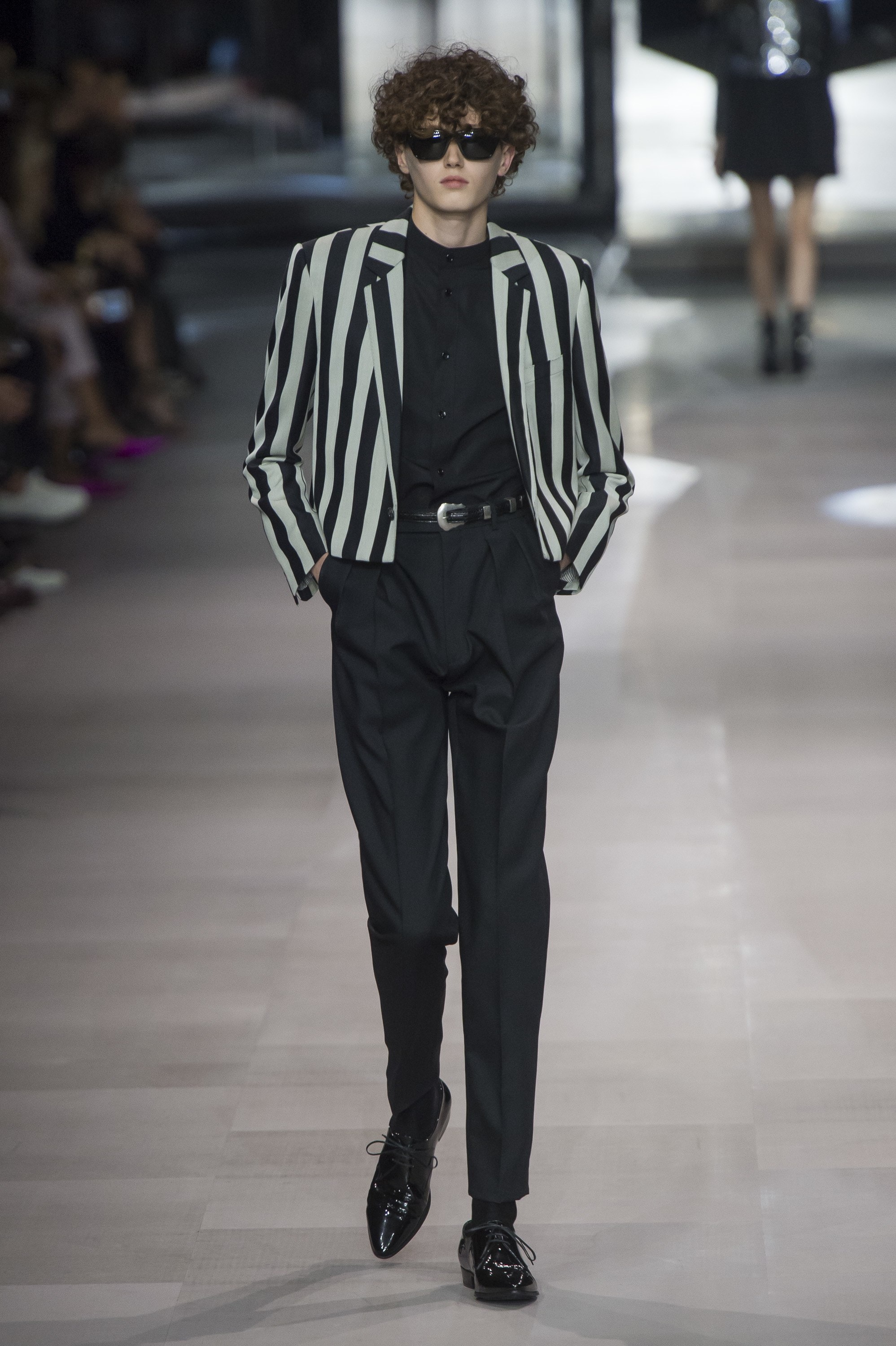巴黎时间9月28日晚,CELINE 2019春夏系列在路易十四时期建造的巴黎荣军院发布。这是新创意总监 Hedi Slimane 在 CELINE 的首秀,他还带来了该品牌的首个男装系列。说这是本季巴黎时装周最受关注的一场秀绝不为过。今年二月 Hedi 接替了任职9年的 Phoebe Philo,并在九月以更换logo和关闭电商等手段对CELINE 大行改革。被曝光的新品虽已在网络上激起不小的浪花,但这场秀终归是人们判断 CELINE 变革深度的标尺。如今看来,CELINE 的确在 Hedi 手中头也不回地步入了新阶段。