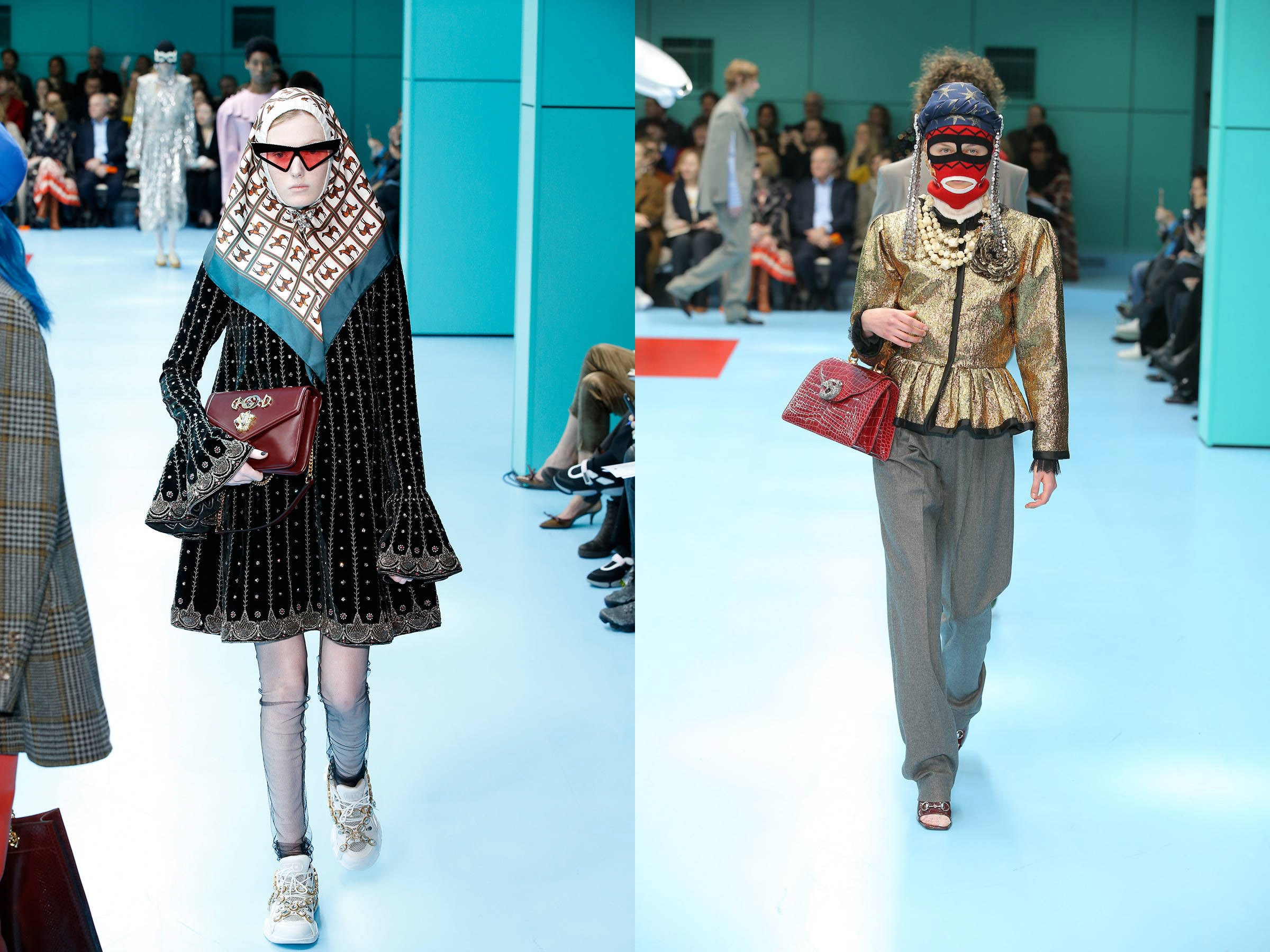 备受期待的 Gucci 2018 秋冬系列发布会在前几天正式举办,并通过品牌官方网站对全球时装爱好者进行了直播。品牌艺术总监 Alessandro Michele 将秀场变成一座时尚版「手术室」,并从女性主义者 Donna Haraway 所发表的《A Manifesto for Cyborgs》汲取灵感,呼吁运用技术将人类改造成「赛博格」,从而对传统世界的种族、性别和物质展开二元论的重组。而设计方面依旧主打各种元素的堆叠,包括品牌最具人气的中世纪复古印花元素,充满贵族气质的高级面料与绣花,以及更加迎合街头的「New York Yankees」和「Paramount Pictures」等现代元素等等,整体相比前几季而言又更具实穿和搭配性,而包括包袋和鞋款在内的配饰设计,相信也会成为今年秋冬最热卖的单品。