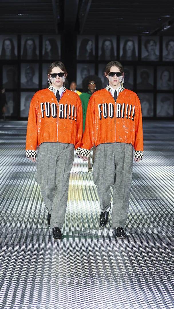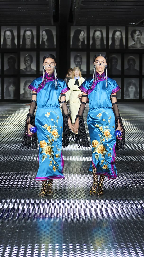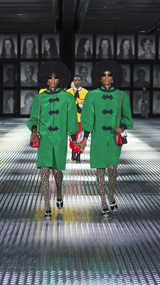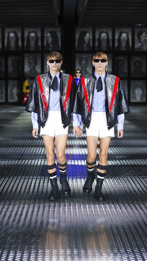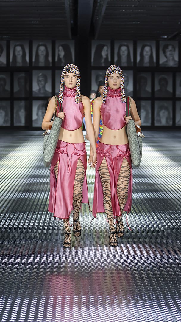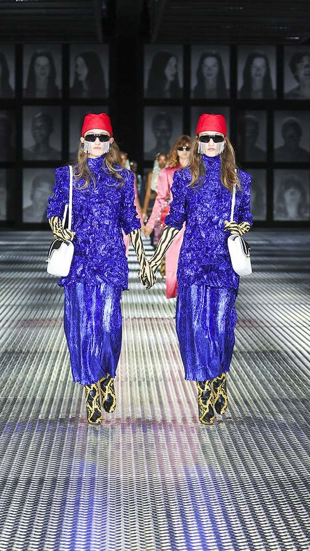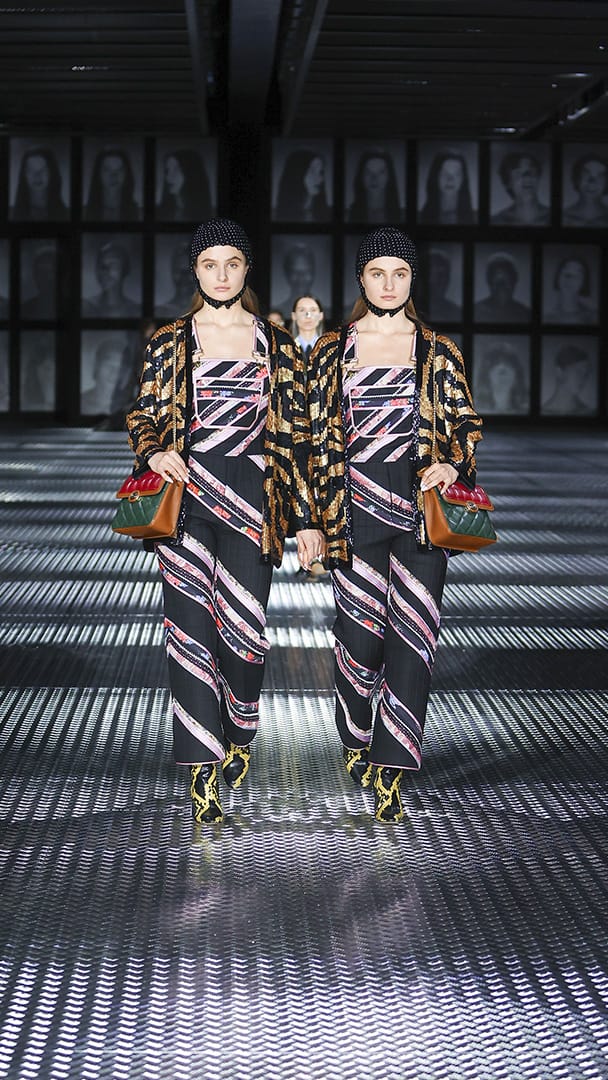 双重分身与自我认同,一直以来都是 Alessandro Michele 所执迷的题材,如过去他和曾 Jared Leto 打扮成双胞胎出席 Met Gala,或打造提着复制人头走秀的惊悚场景。 Michele 认为,世上即使有另一个你,穿着相同、形貌相同,每个人终究是不同的个体,拥有相异的风格,拥抱不同的灵魂,「同样的衣服在相同的身体上,却能散发出截然不同的气质。」他说道。