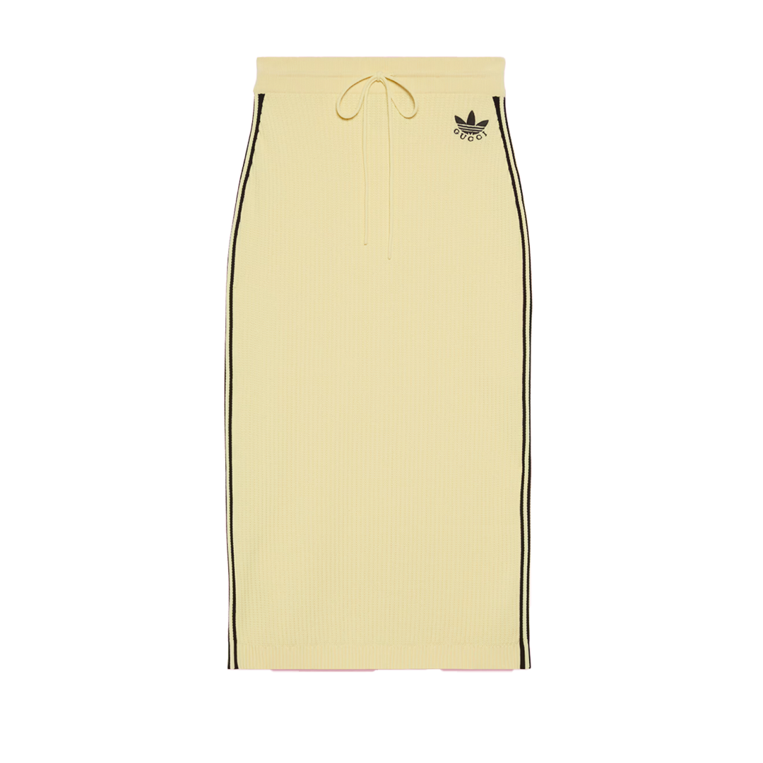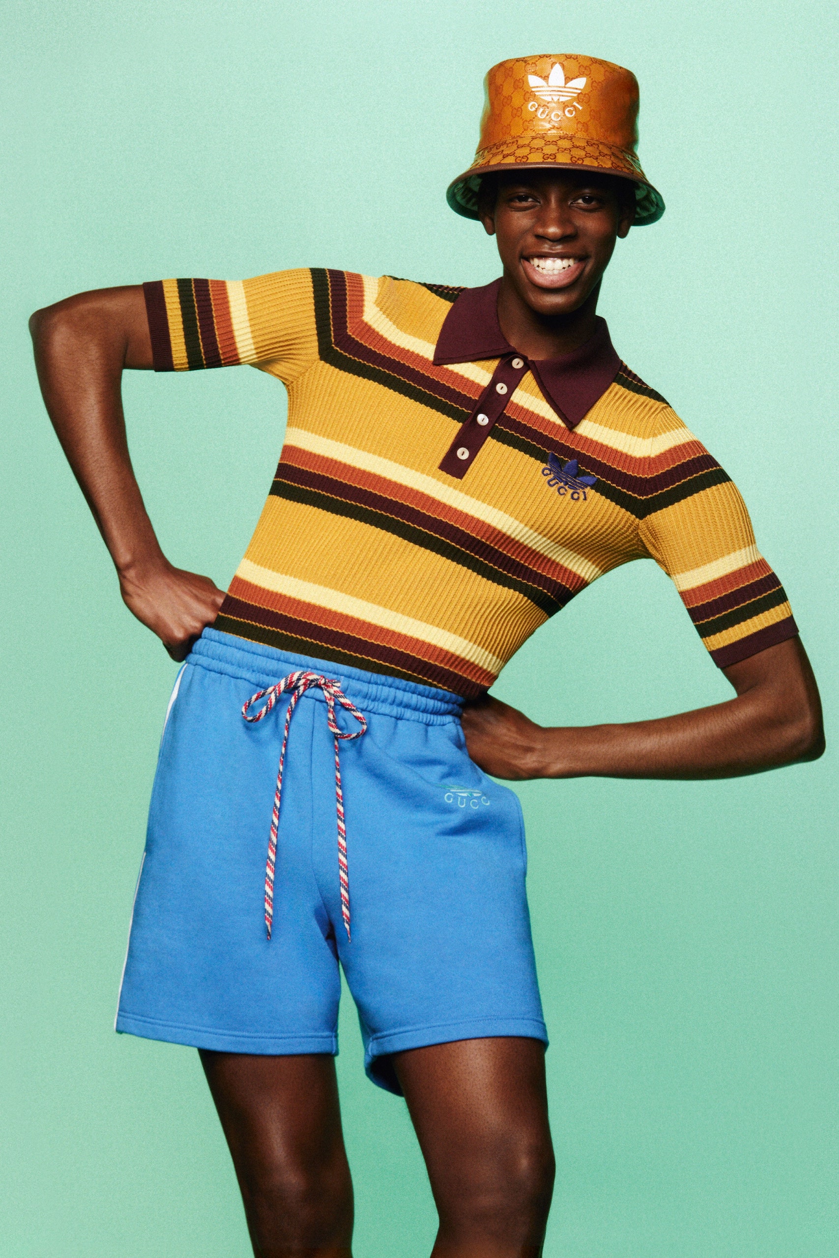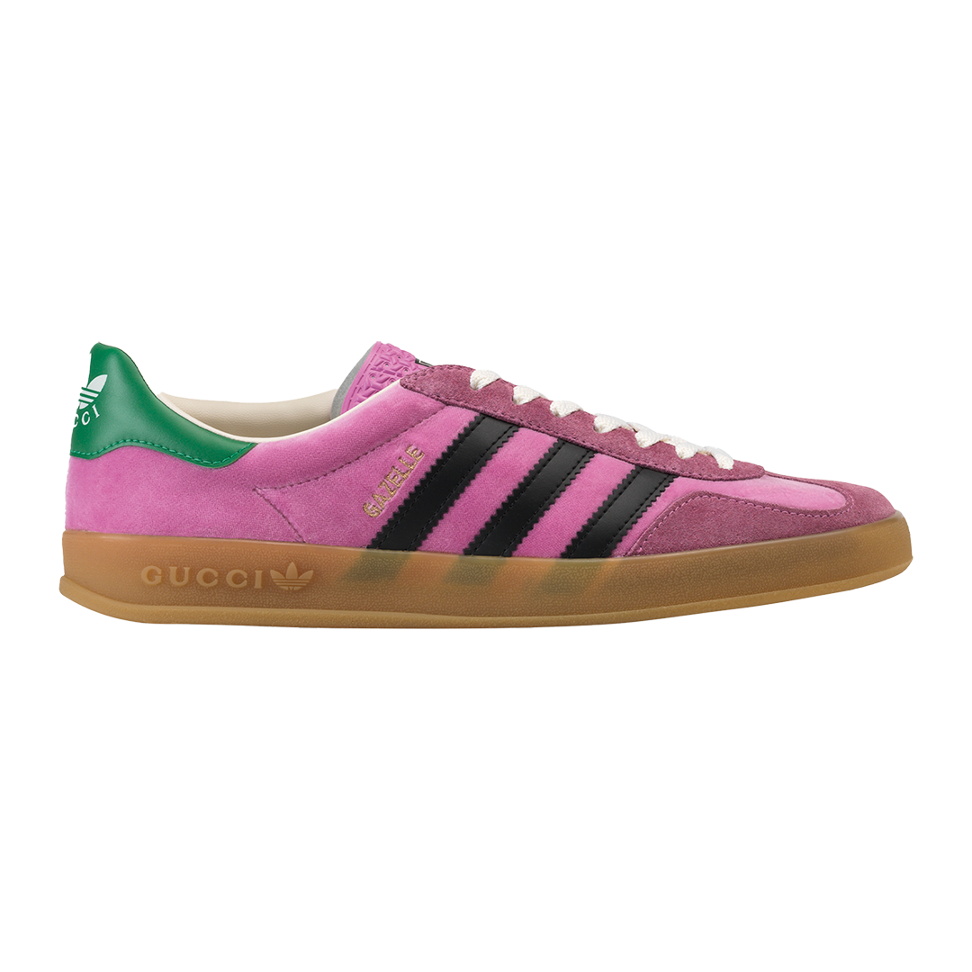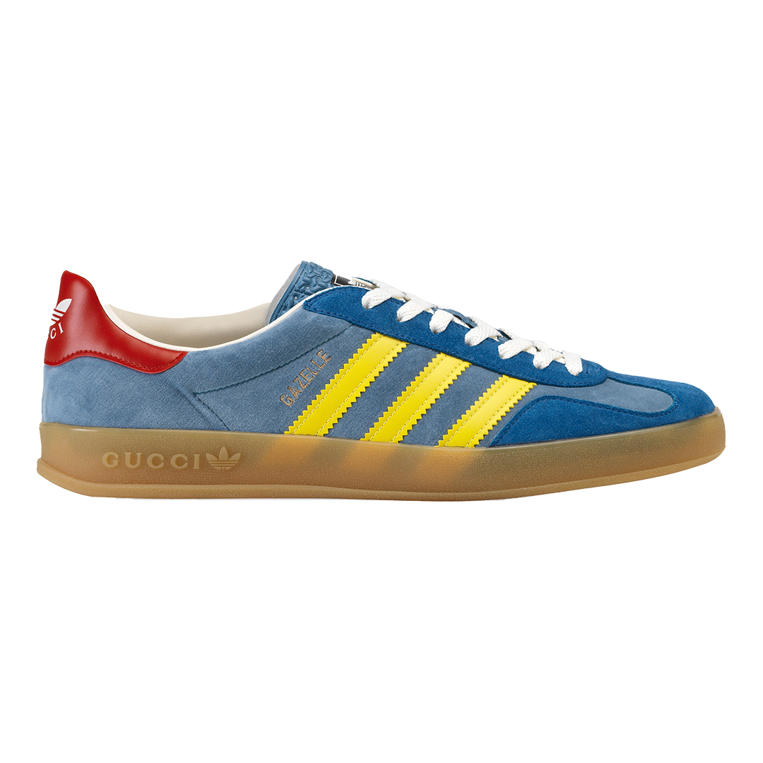 此次合作以复古美学为主题,将传统意义上的正装单品与复古语境结合,将Adidas的三叶草、三条纹标志与GUCCI的「双 G」图样、红灯绿织带等元素相融合,打造复古特色鲜明的运动单品。
