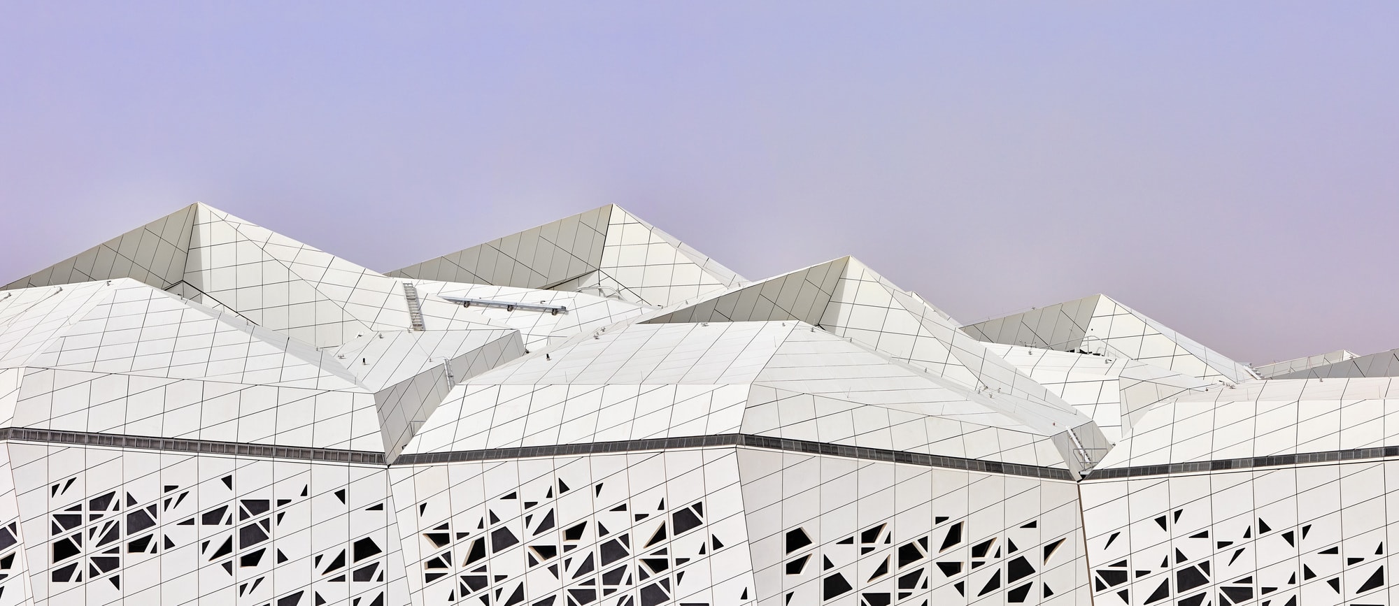 这些六角棱柱形的蜂窝结构可以使用最少的材料就能在指定的容积内体积创建单元晶格。这种结构和布局理念确定了KAPSARC的组合就是沙漠景观和晶格形式的结合,并且能够最好地应对环境条件和室内设计的要求。 这些蜂窝晶格朝着中心轴线压缩,并作为向西方河道的自然延伸。
