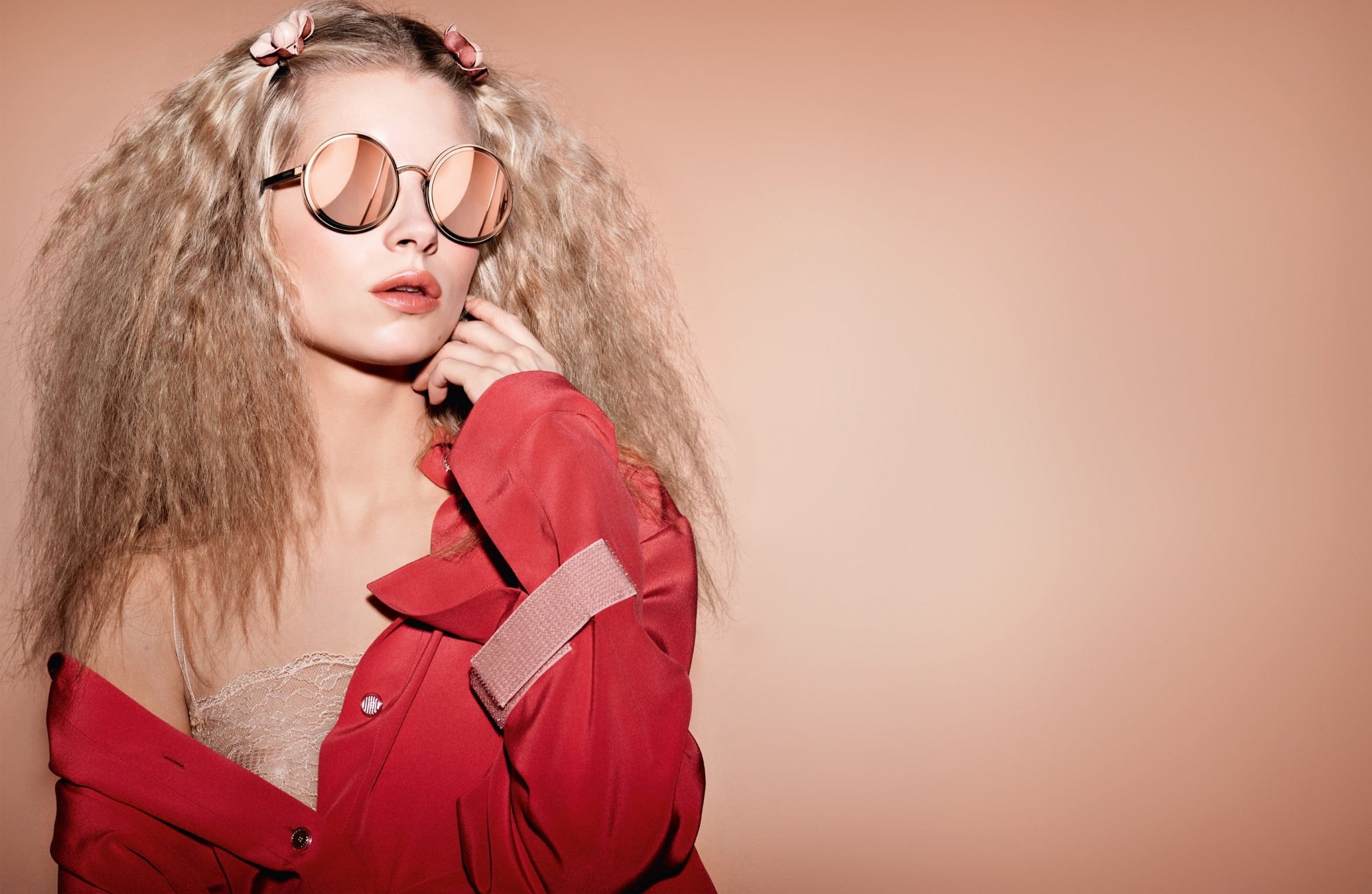 这组全新宣传大片以玫瑰蜜桃色为背景,在 Karl Lagerfeld 的镜头前, Lottie Moss 身着轻柔的裸色乔其绉连衣裙,蓬松的金色细长卷发,并以山茶花发夹将秀发拢向两侧。温润透明的名贵树脂材质Pantos广角圆框眼镜,将她湛蓝色的眼眸衬托得愈发清澈动人;超大款太阳眼镜轮廓清晰,展现简约美学与永恒优雅的韵味。 Lottie Moss 还以一袭黑色蕾丝轻衣,搭配镜片镶饰18K黄金的蝴蝶框太阳眼镜;又或者不经意地松开纽扣半露香肩的红色衬衫,搭配18K玫瑰金镜片的圆框款式,甜美纯真的同时透出浓浓的六十年代嬉皮士风情。