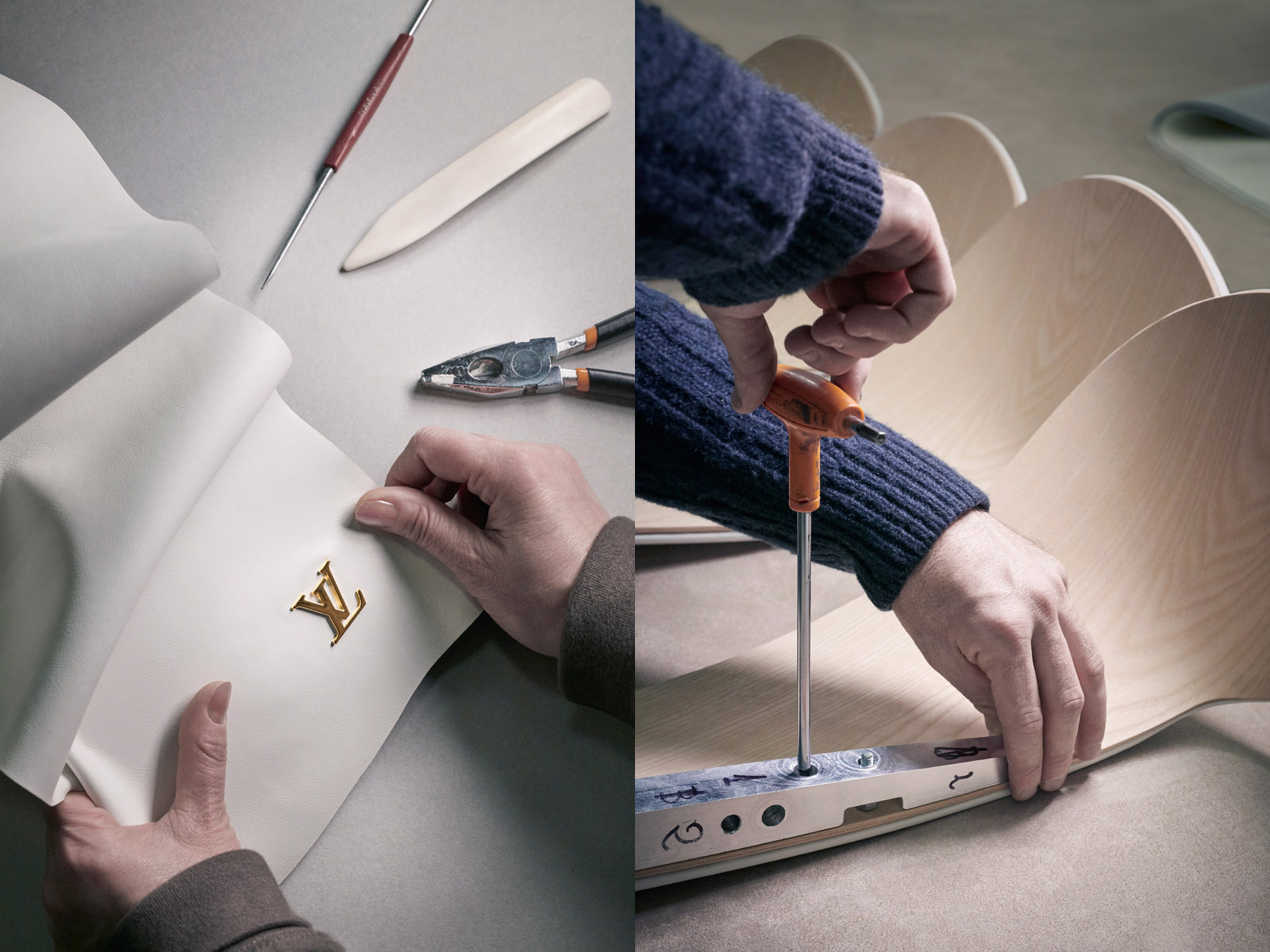 为路易威登设计这款“花瓣凳子”时,吉冈德仁采用了品牌极具代表性的四瓣花标志的形态,并将其转化为一款具有象征意义的产品,代表着花朵从蓓蕾到盛开的过程。这款坐具完美展示了路易威登品牌在木材与皮革加工方面的精湛工艺,尤其突出了他们在品牌发展过程中不断摸索出的技巧。通过简洁而又巧妙的设计,这款艺术品传达出能够超越时间的形象信息,不仅突出了历史感,更描绘出路易威登品牌的未来。