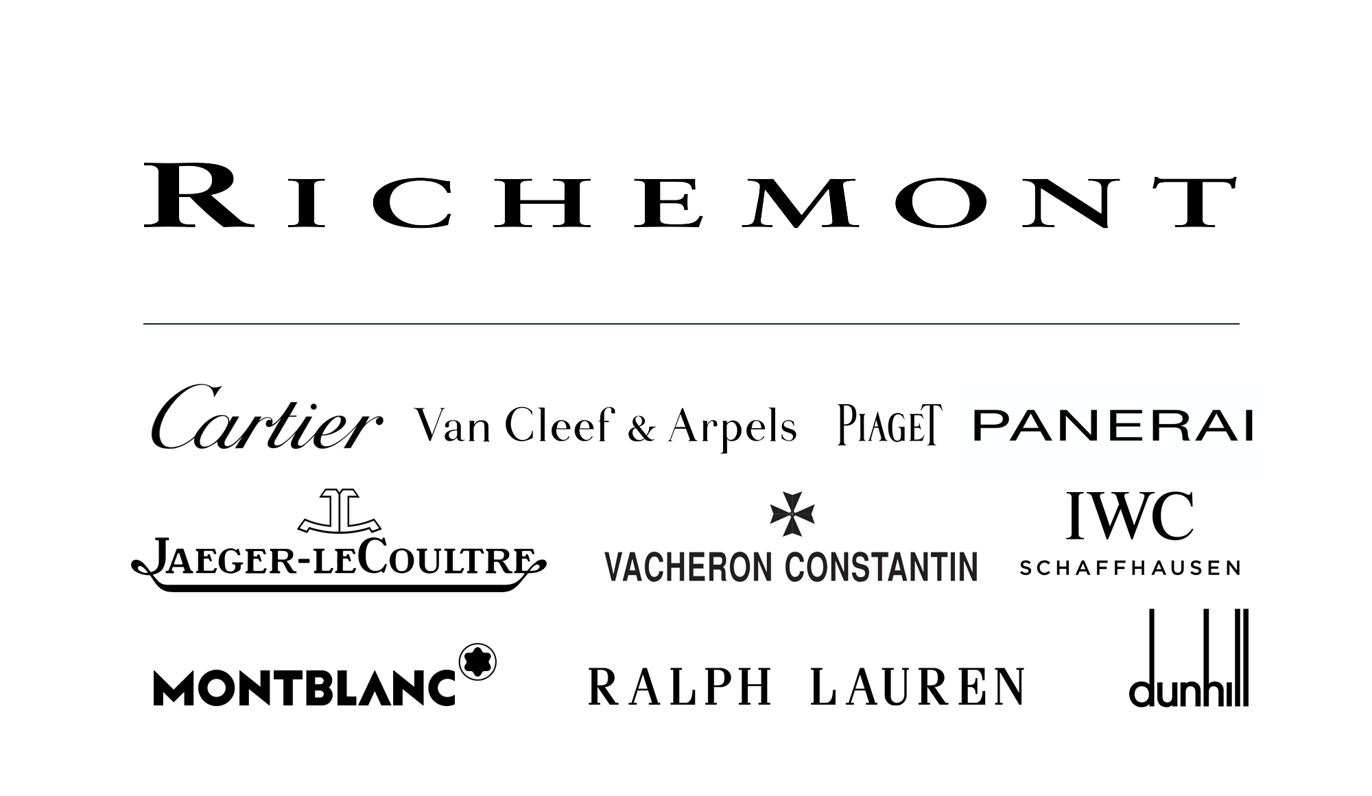 Cartier、Van Cleef & Arpels、Piaget、Vacheron Constantin、Jaeger-LeCoultre、Officine Panerai、International Watch Co、Baume et Mercier、Montblanc、Alfred Dunhill、Ralph Lauren、Lancel、Chloé……