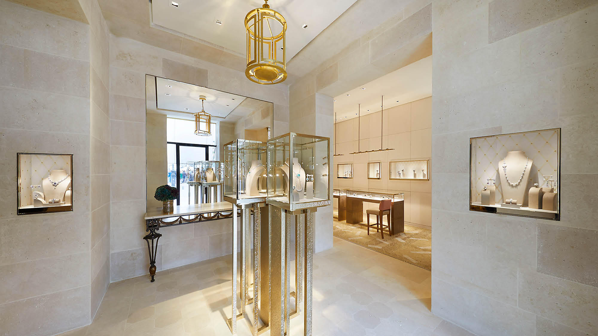 在设计这座全新旗舰店时,Peter Marino 巧妙地将新旧元素冶为一炉,充分运用可体现法式工艺传统的技术与材料,同时小心翼翼地融入超现代设计样式。透过修复为初始风格的店面外墙,店内空间宽敞开放,明朗亮堂。无处不在的玻璃、浅色石料、手工墙面涂料、以及精美的镶木地板与石材地板,使各层空间均展现出细腻的个性风格,同时又有机结合,构成统一整体。
