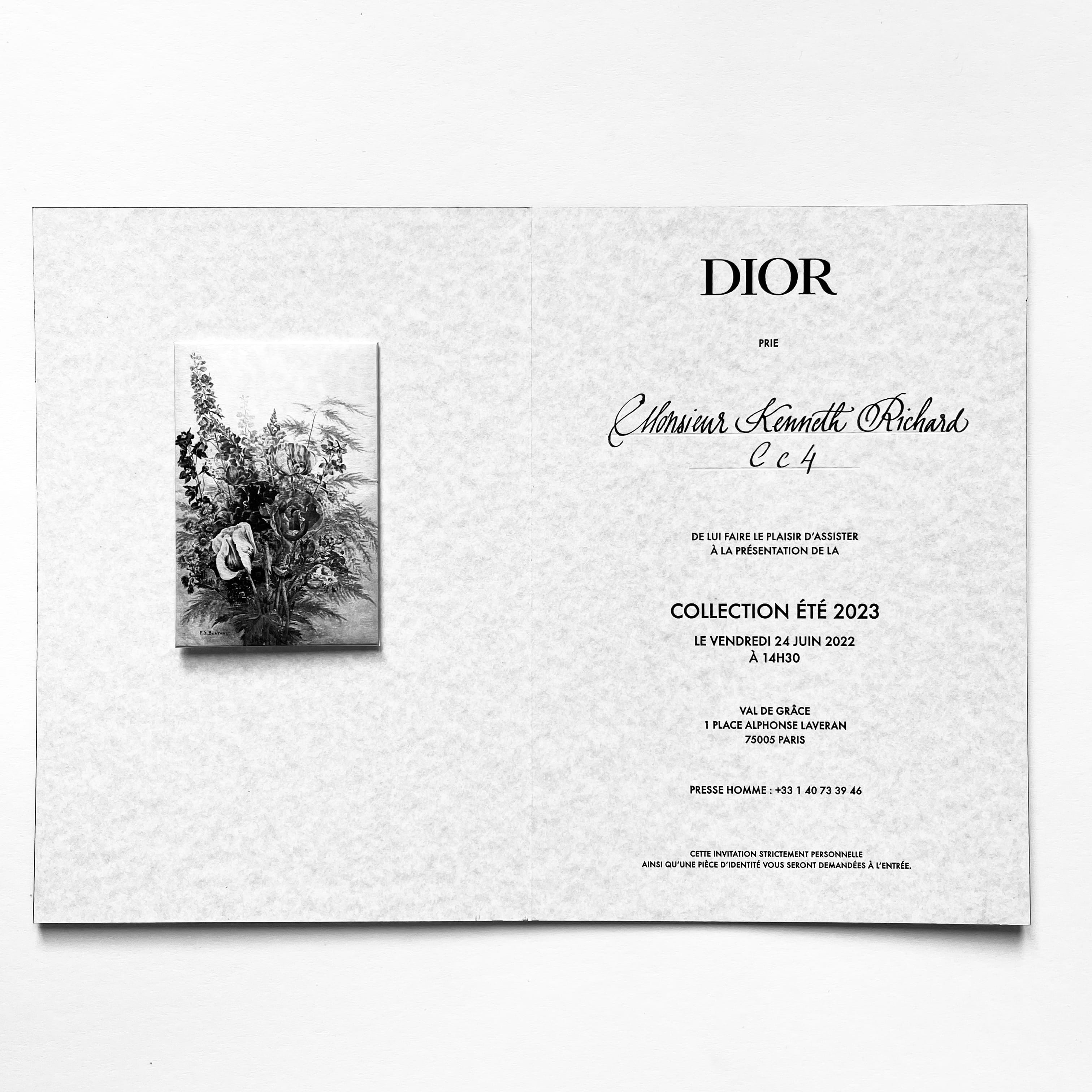 Marine Serre 和 Kenzo 分别以防汗带和三角旗的形式发出邀请,暗示了他们即将推出的系列的运动和学术主题,而 DIOR 则以美丽的彩绘花朵和一些干植物作为引导,指出其花园主题。