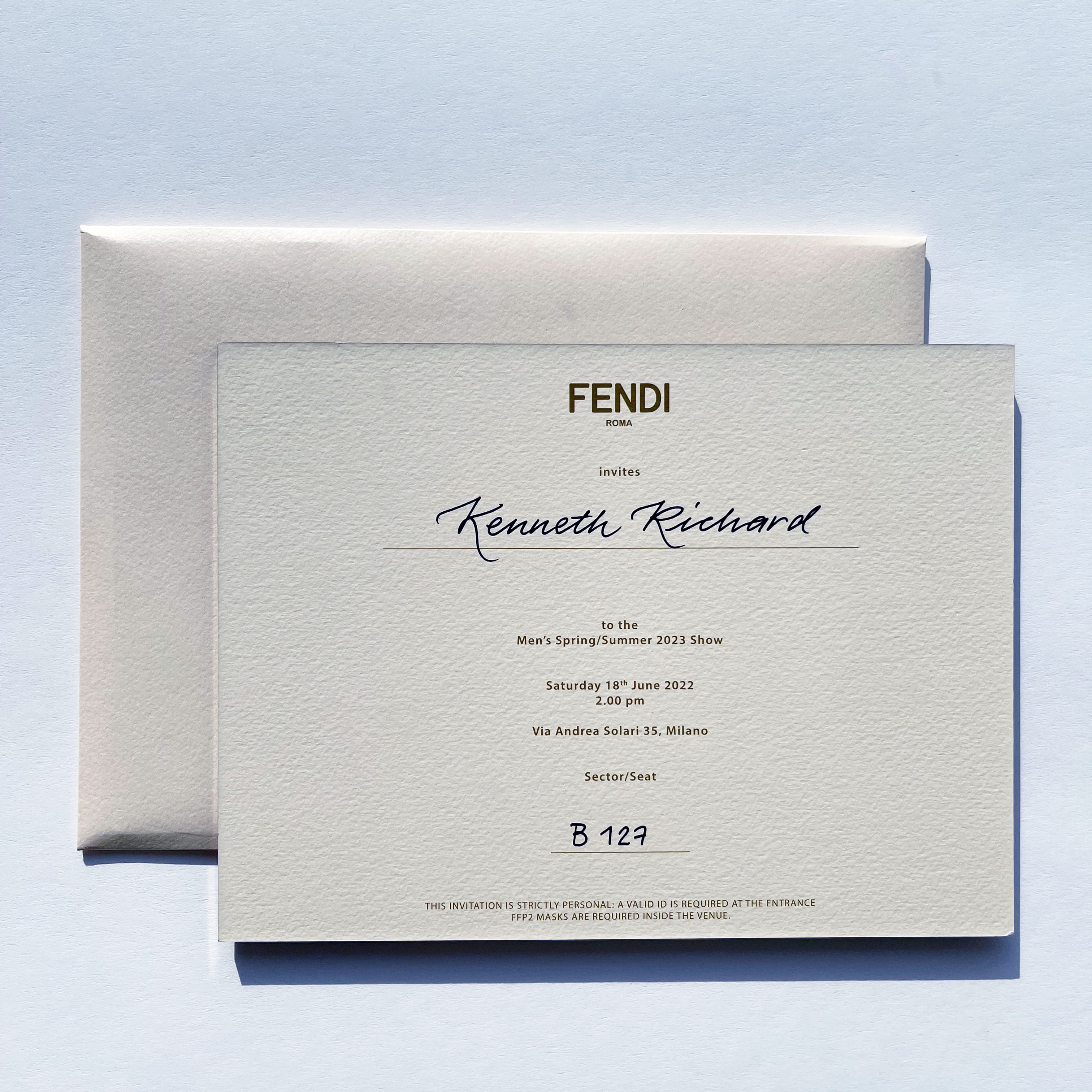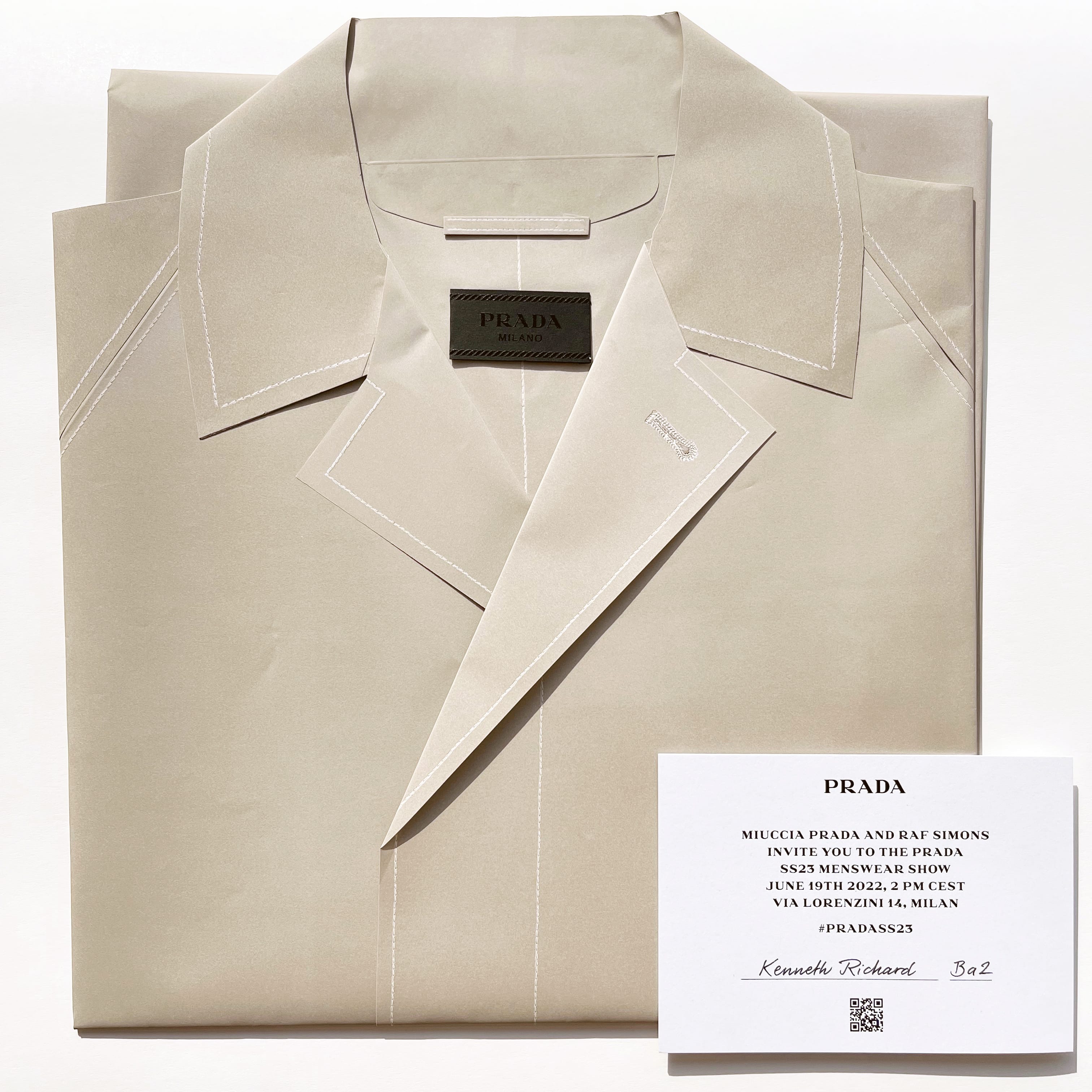 随着数字化越来越贴近人们的生活中,已经很难看到实体的书信,举办某些重要事情时,也只是一个电子版的邀请函,而实体的邀请函更显得弥足珍贵。对于时装品牌来说,每年两次的时装秀都是品牌的重要时刻,品牌利用这个机会,通过发送实际的衣服,例如 Dolce & Gabbana 的帽子和衬衫组合,或 Prada 具有讽刺意味的不穿纸外套。