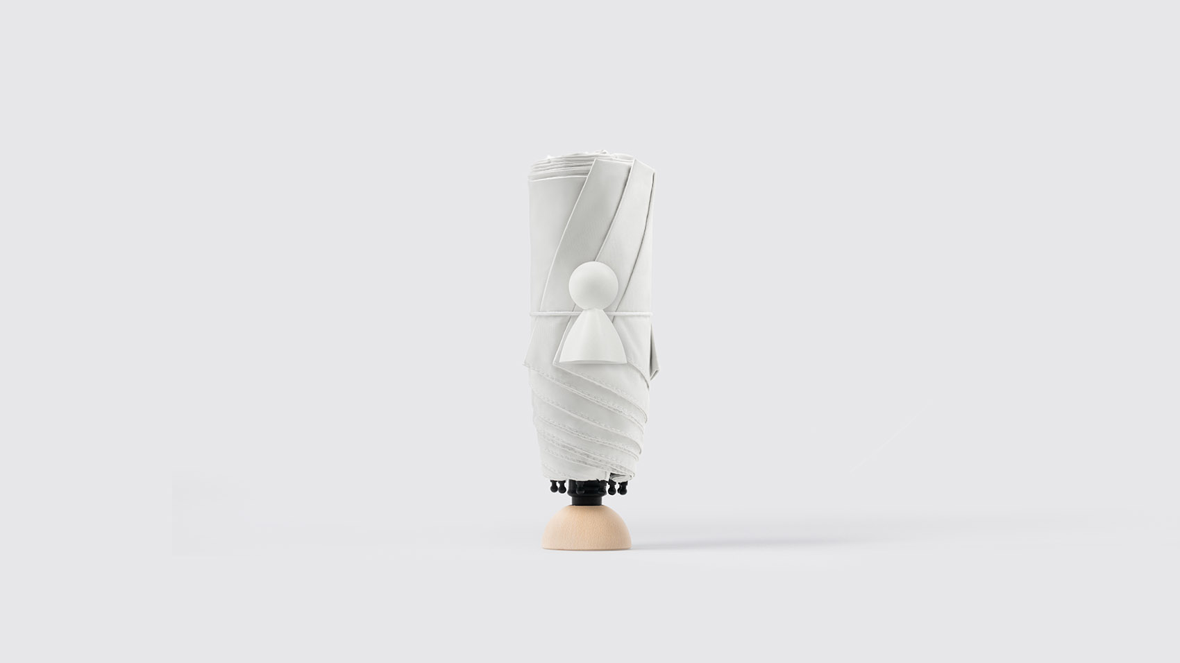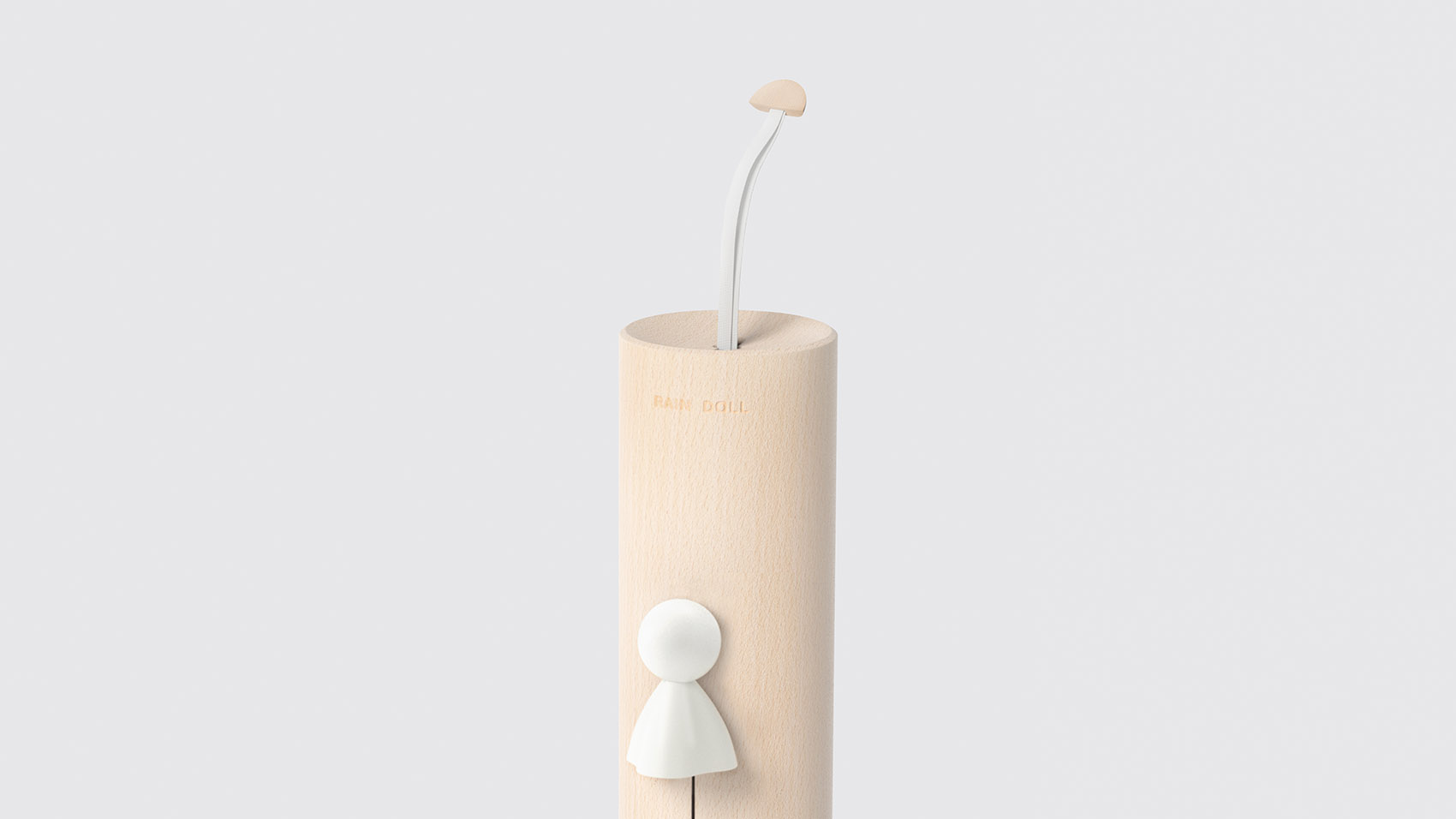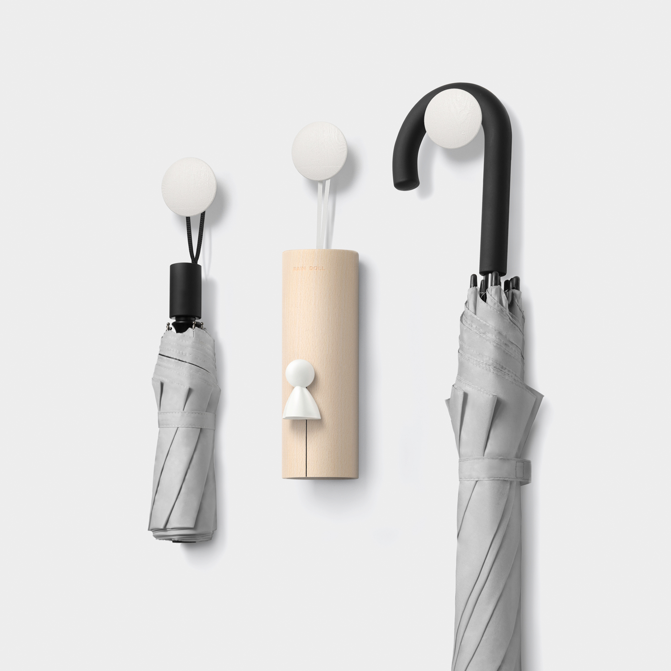 Raindoll 是一把由一融设计公司所设计的雨伞,这把自带晴天娃娃的雨伞,一定会让你爱上雨天的日子。设计的灵感来源于生活中美好时光的联想,站在雨天撑起的雨伞下,看着雨水顺着伞檐落下,想到小时候坐在板凳上发呆,看着雨水沿着屋檐像串珠一般落下的情景,传统的房子屋檐下都会挂着晴天娃娃,有着祈福晴朗和平安的寓意,这样美好的联想给原本日常的产品赋予了特殊的情感,而晴天宝宝的设计打破了传统伞扣的定式,让雨伞有了全新的情感联系,同时也创造了独一无二的品牌符号。