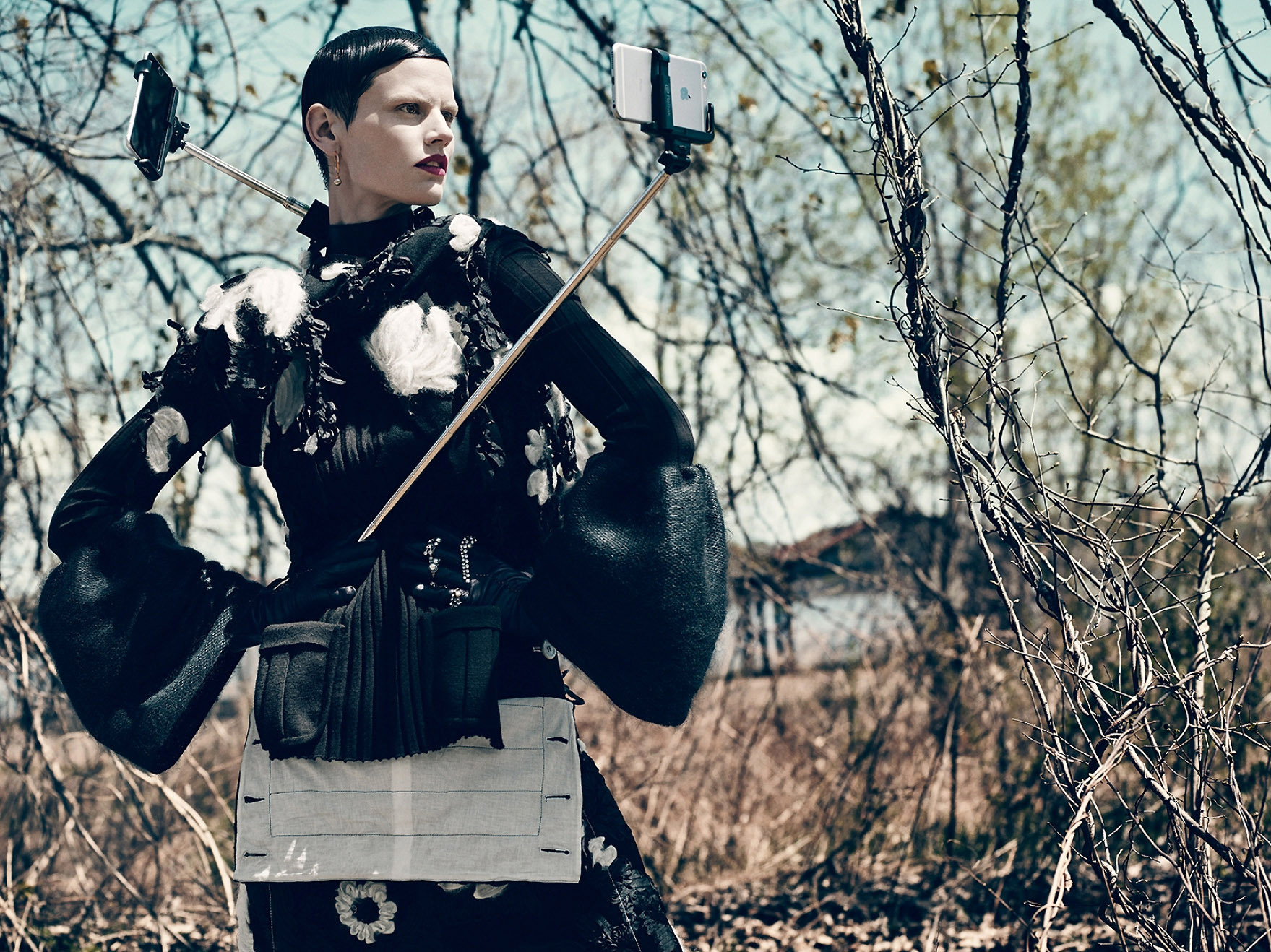 前几天刚看到disney乐园要全面禁止自拍杆,但人类似乎已经无法阻止自拍杆的前行了。由模特Saskia de Brauw 演绎,Mikael Jansson 掌镜的Interview 杂志 2015年6/7月刊“自拍杆”大片。