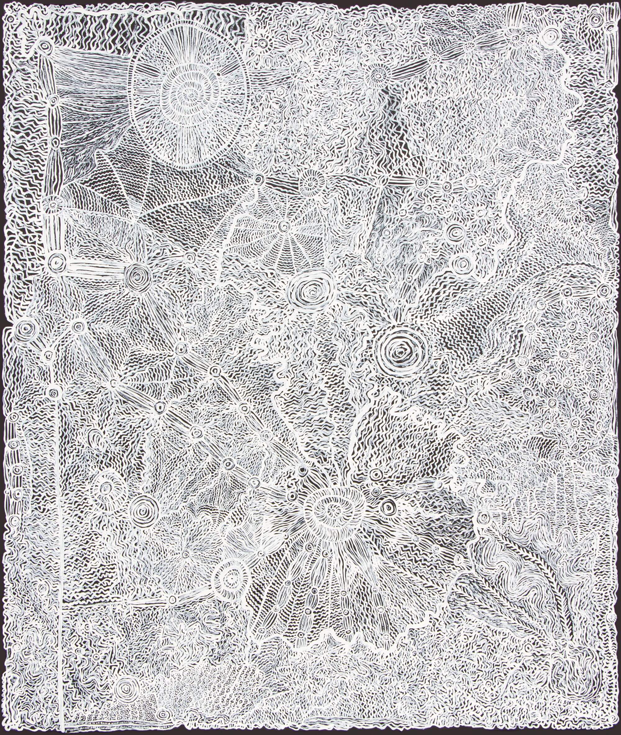 “Betty Muffler不仅是一位卓越的艺术家,而且还是一名Ngangkari(澳大利亚传统的土著治疗师)。她具有极强的天赋,可以通过精神感知和接触他人来实现疗愈。她来自南澳大利亚东北部偏远地区Indulkana社区的Iwantja Arts,该地区位于爱丽丝泉以南约400公里处。在去年夏天出现毁灭性的森林大火、新冠疫情大流行和“黑人的命也是命”运动之后,我想选择一张独特的澳大利亚照片,代表我们所有人的希望、疗愈和团结。Betty的治愈能力和正能量都体现在她的这幅作品之中,这要归功于红色赭石颜料(直接取自她的祖国) ,以及类似花边的行歌线条,代表着她的精神在空中翱翔。” 图© Betty Muffler