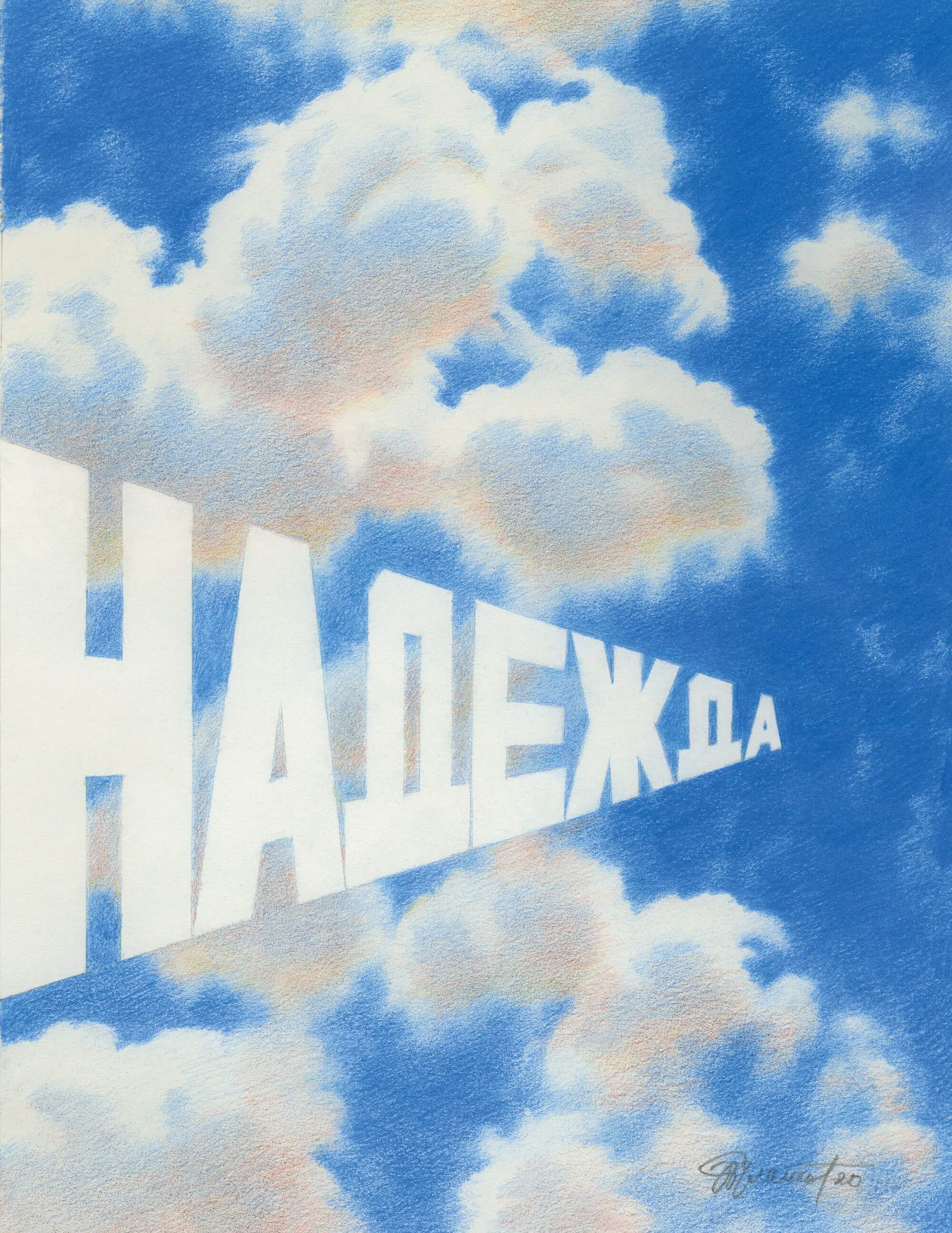 “Vogue俄罗斯9月刊封面的作者是Erik Bulatov(该作品的名称为Nadeshda)。他是苏联流行艺术Sots的代表派人士,其水平可与David Hockney和John Baldessari齐名。早在1970年代的苏联后期,他就将苏联海报和风景画相结合而闻名,如今,他生活在巴黎,仍然是俄罗斯最著名以及作品最昂贵的艺术家之一。 Gosha Rubchinskiy的最后一场演出就是在他的作品Freedom的背景下进行的。在云中飞行的Надежда(俄语中的“希望”)对我们来说具有普世意义,地球上的每个人都可以表达自己的想法和愿望。我们的Vogue团队相信语言、艺术和视觉的力量,就像我们相信风格和品味的力量一样。” 图© Erik Bulatov