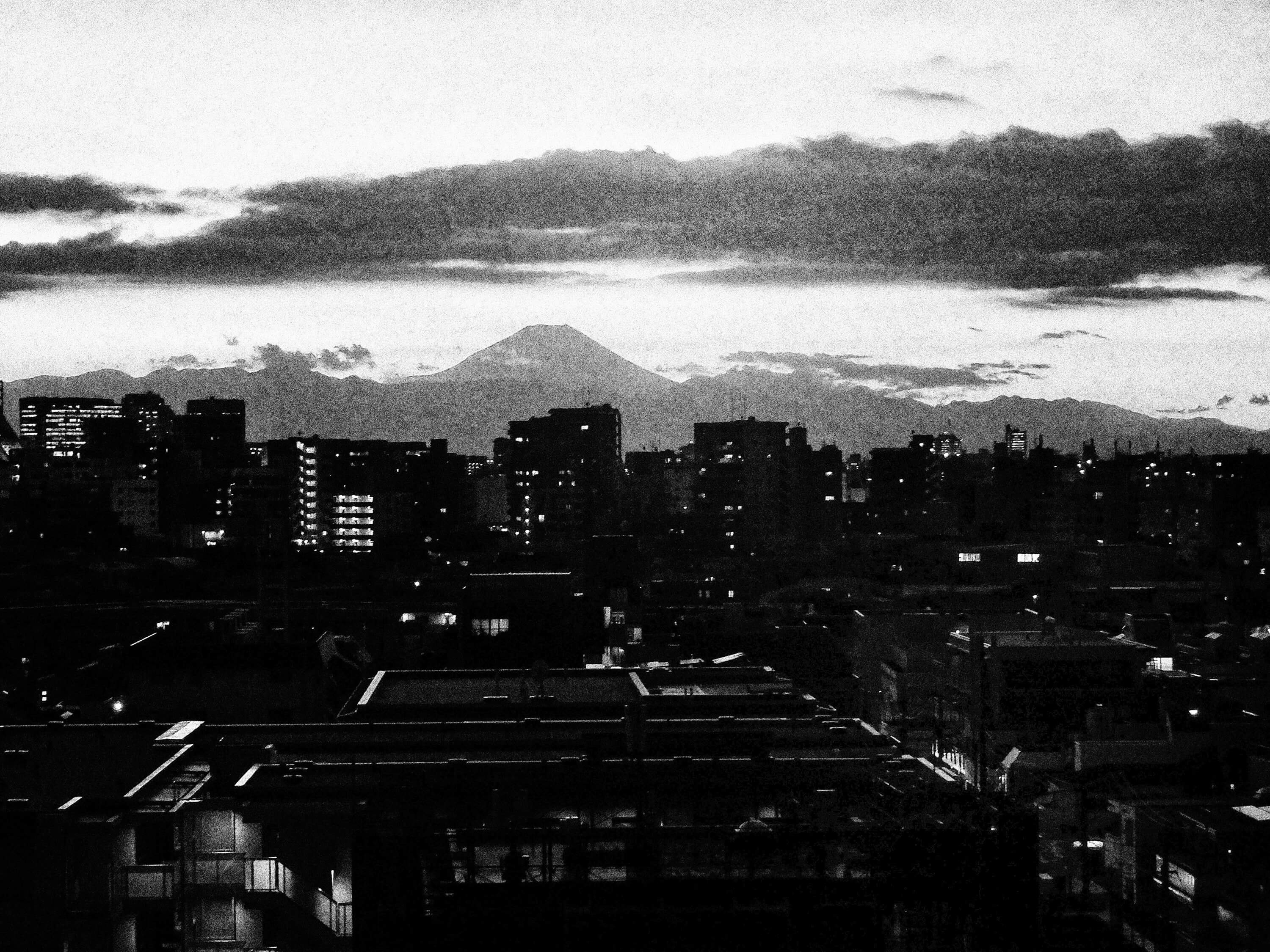 “从远古时代起,富士山一直是唯一的大自然崇拜圣地,在日本现在仍然是人们心中希望和祈愿的象征。它不仅极具美感,而且更激发了人类对自然的敬畏之心,它也让人们审视人与自然之间的关系。这是日本著名摄影师之一森山大道在家中拍摄的富士山,它在日落时安静地注视着城市和路人。富士山的神圣存在仿佛让人们在漆黑的夜晚中看到希望。” 图© Daidō Moriyama