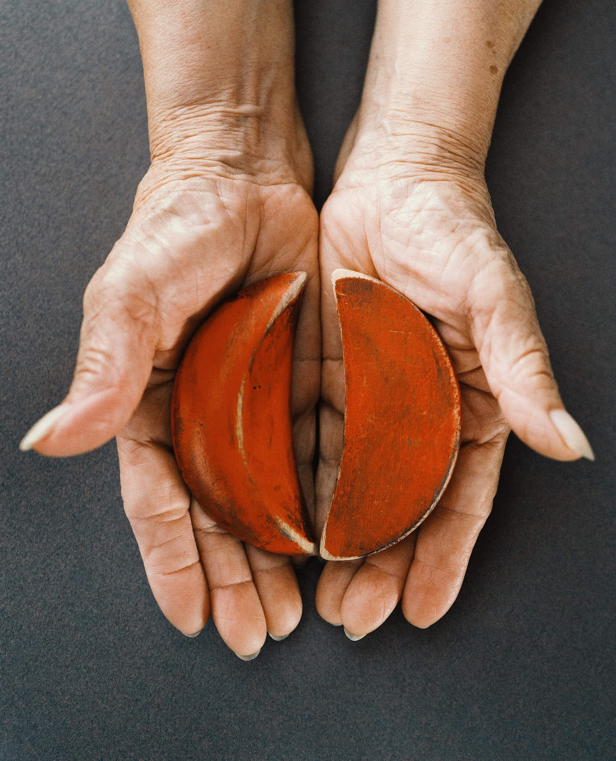 “民间习俗,在我们的传统文化中占有重要地位,尽管这一种特殊的占卜仪式,可能并非所有人都会参与,但我深信每个人都希望他们的愿望得以实现。投掷这些新月块所进行祈祷的仪式,在台语中称为掷筊(bwa bwei),当它们落在地上时,如果凸起的一面和平坦的一面朝上,如图所示,就表示占卜的结果为:Yes! ”。图© Zhong Lin