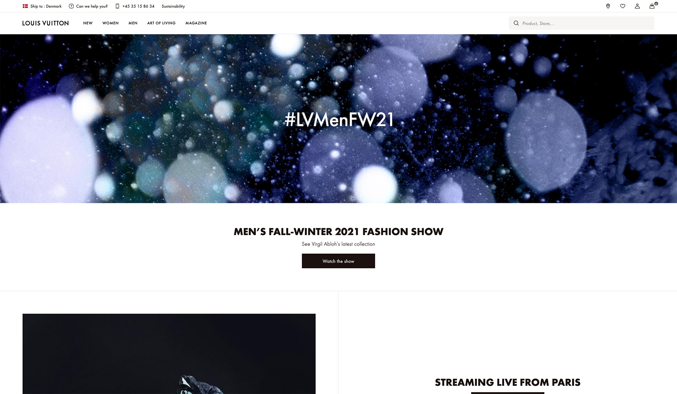 以Georgia字体为源的定制“LV”字母组合将粗衬线和细笔画完美结合,给人以极强的视觉冲击。路易威登的文字商标和文本内容均使用了Futura字体,定制字体与Futura字体交叉使用,相辅相成,形成了良好的视觉平衡。在路易威登的网站上,Georgia字体在文本内容中也得到了应用。不过,除了这些字体外,网站上还使用了Austin Roman字体和LV Clemence字体,排版层次略显混乱。