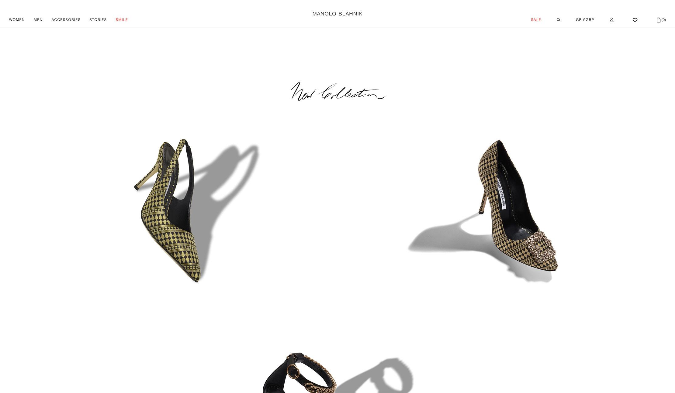 Manolo Blahnik选择了Arial字体,而且在整个网站中只使用了这一种字体。这种字体一致性很强,但Arial在每台电脑上都能使用,是一种新式Grotesque字体。所以,对于这样一个高端品牌来说,这种字体选择非常令人意外,也缺乏创意。从好的一面来看,这种字体在电脑上的使用频率很高,说明实用性还是很强的。在Manolo Blahnik的网站上,网站背景为白色,可发挥的空间非常大。标题和导航栏都使用了全大写字母,辅以奢华意象,但核心字体,即Arial字体的使用在突显差异化方面的表现欠佳。