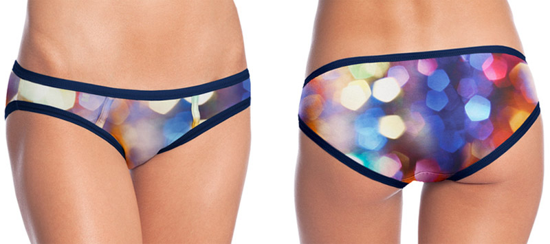内衣面料选用了有机棉。女士系列有三种不同裁剪样式(比基尼、平底裤和短裤),男士系列