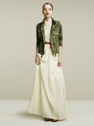 墨绿、水鸭绿、松石绿、橄榄绿…… zara 2011年4月的女装lookbook里,生机勃勃的绿色系让人仿佛置身茂密的大森林,呼吸间尽是大自然的清新气息。彩色条纹图案持续蹿红,工笔画式的花朵图案,更是春夏季节不可缺少的元素。